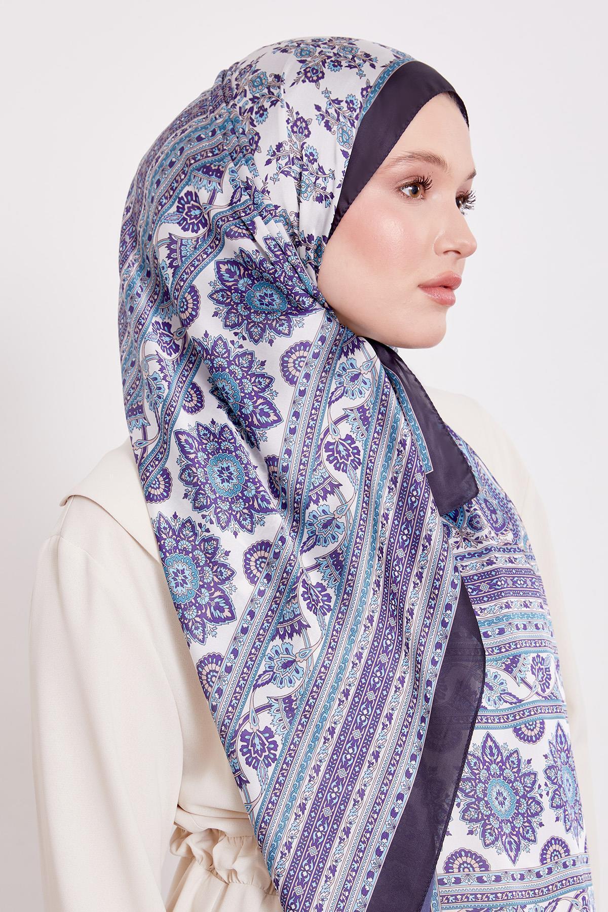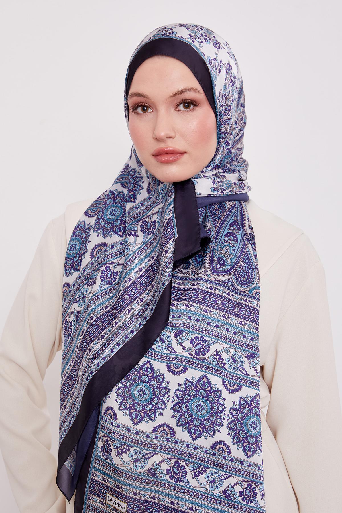 Lacivert Sarmal Desen Hint İpeği Şal Lacivert Sarmal Desen Hint İpeği Şal LVD.HNT.0024 70 x 180
