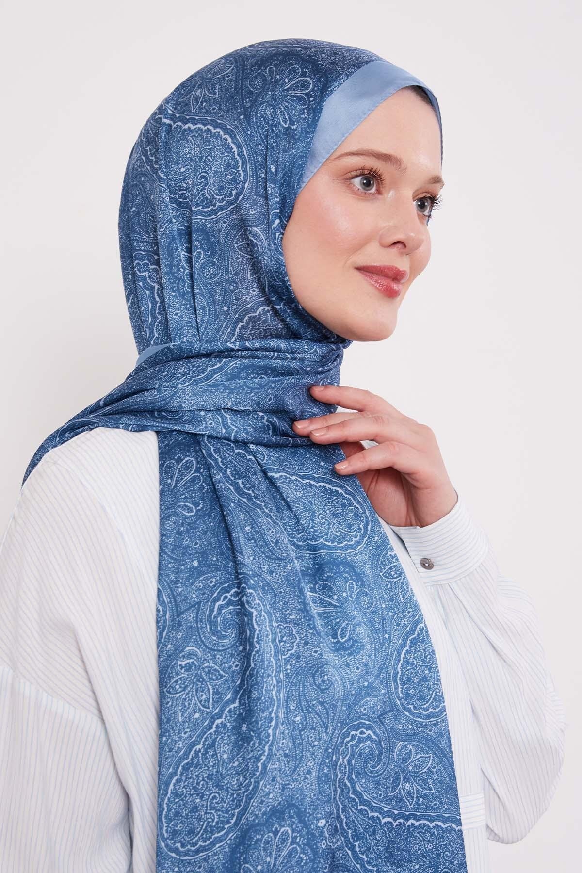 Bebe Mavisi Otantik Desen Hint İpeği Şal Bebe Mavisi Otantik Desen Hint İpeği Şal LVD.HNT.0029 75 x 195