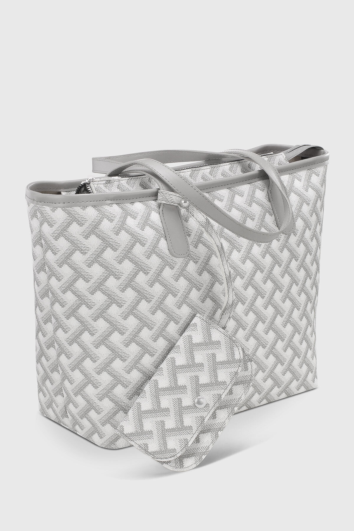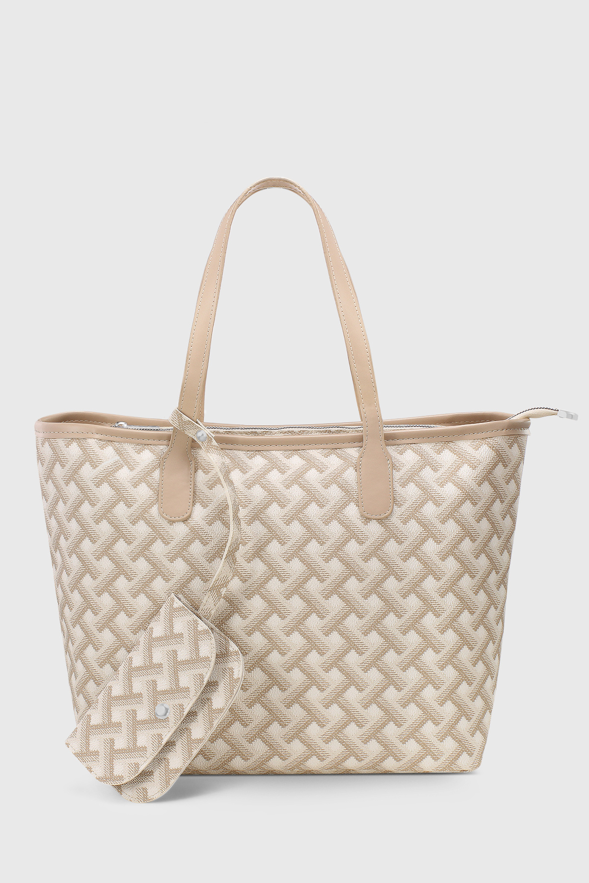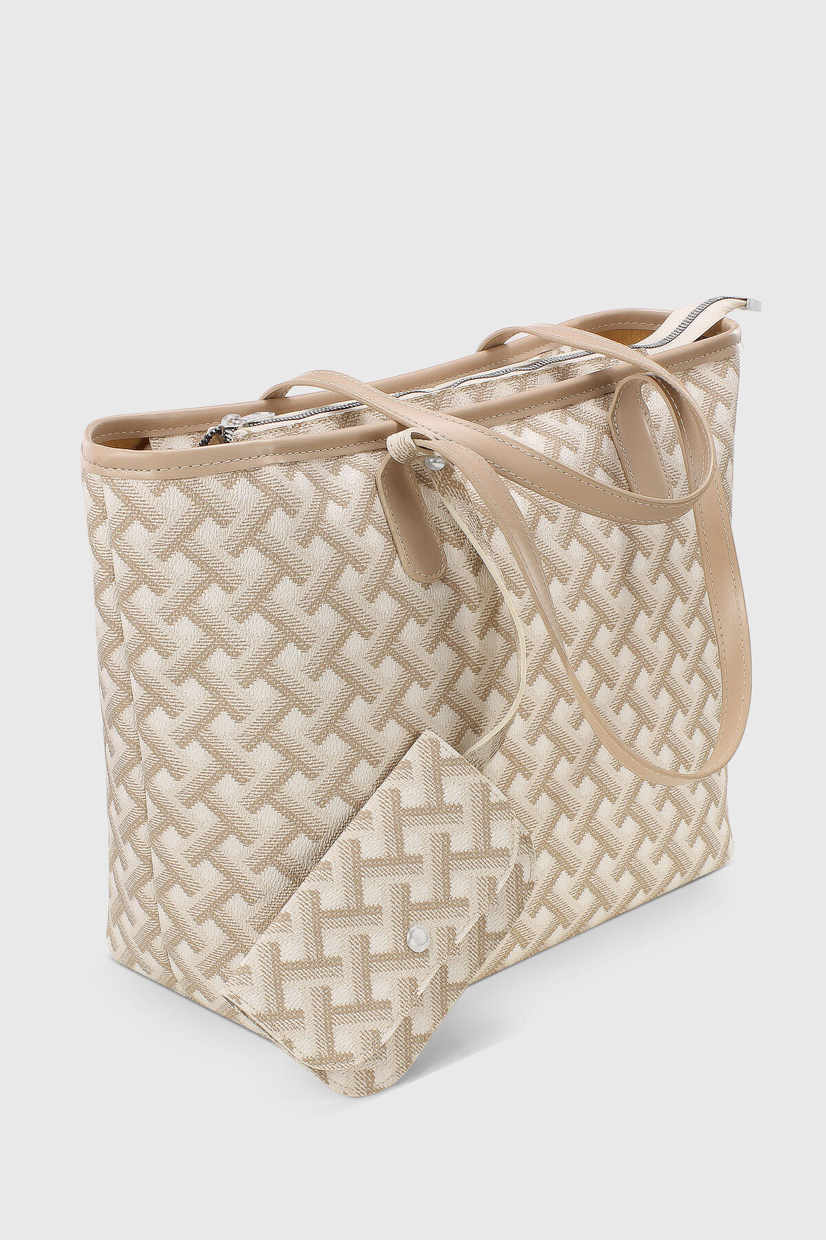Cüzdan Aksesuarlı Krem Geometrik Desenli Büyük Kapasiteli Suya Dayanıklı Shopper Çanta 282 Cüzdan Aksesuarlı Krem Geometrik Desenli Büyük Kapasiteli Suya Dayanıklı Shopper Çanta 282 تک سایز