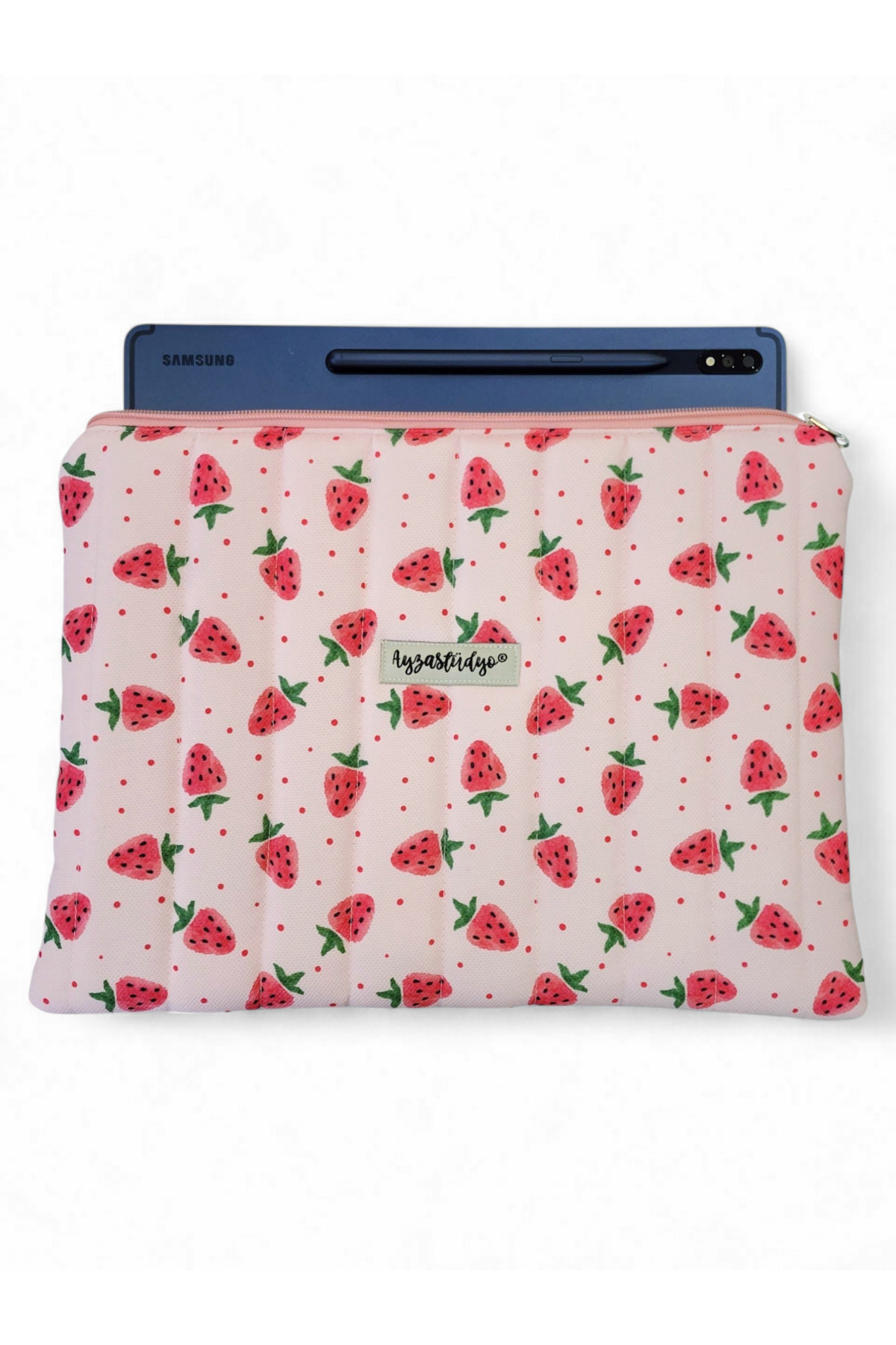Çilekli Pembe iPad Tablet Çantası, 10-12 inç Uyumlu Çilekli Pembe iPad Tablet Çantası, 10-12 inç Uyumlu AyzaS-TK تک سایز