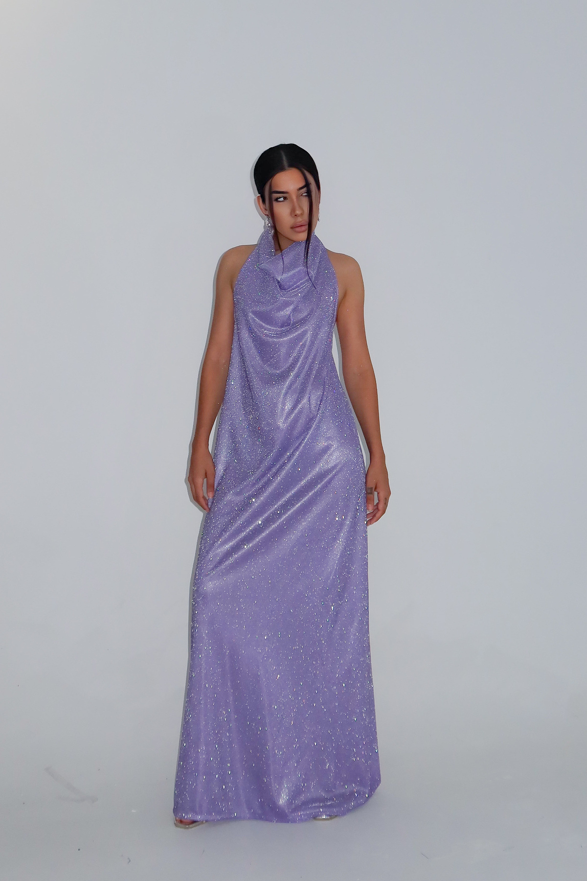 Simli Boğazlı degaje mavi boy elbise Simli Boğazlı degaje mavi boy elbise THE00425 M/L