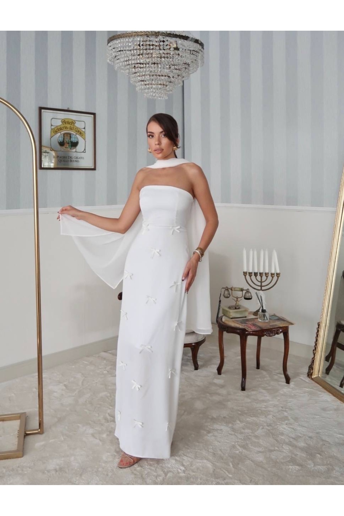 Nova Saten Şal Detay Uzun Elbise Nova Saten Şal Detay Uzun Elbise CON6338 XL