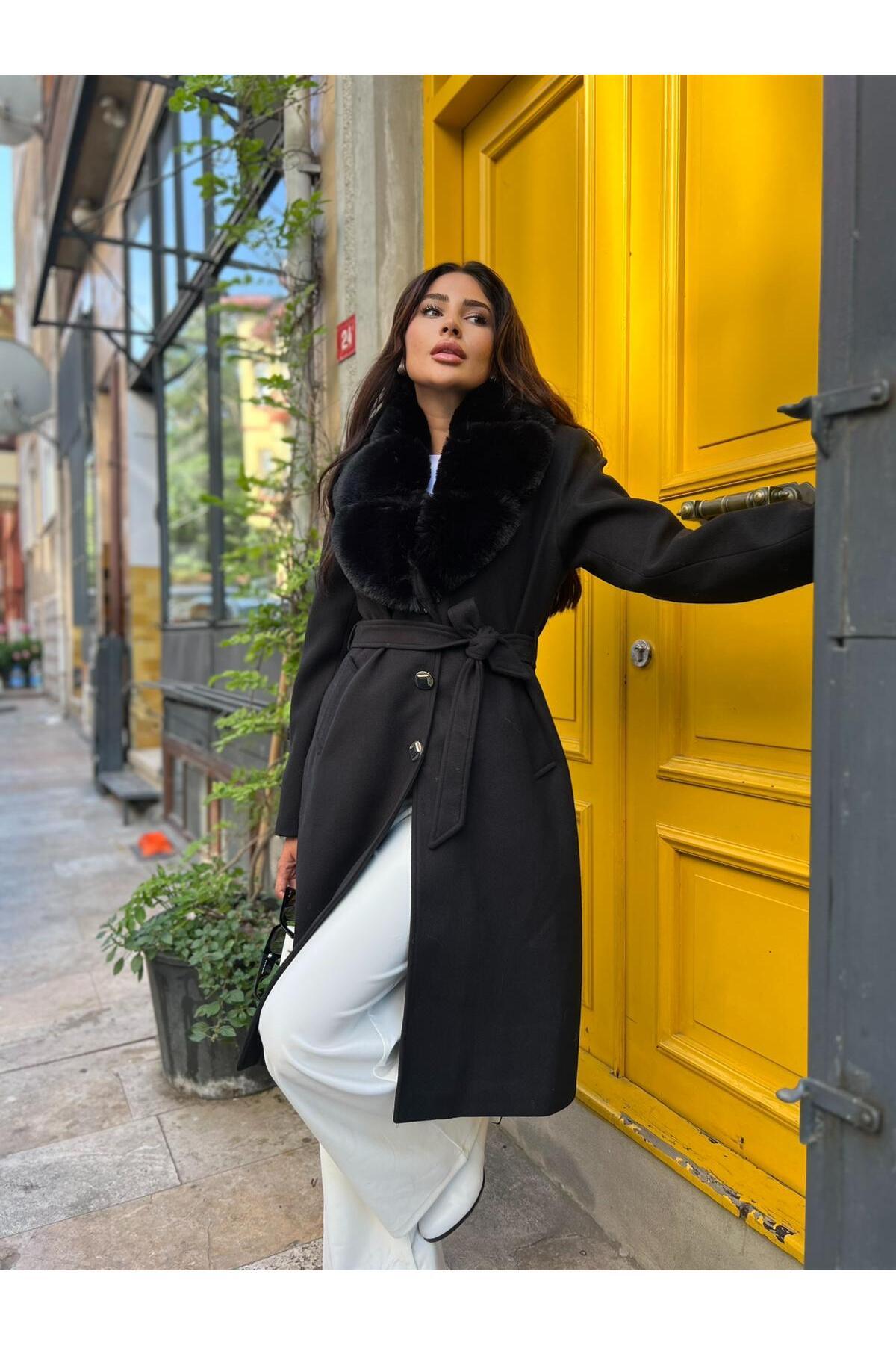 Yaka Detaylı Özel Tasarım Kuşaklı Kaban Yaka Detaylı Özel Tasarım Kuşaklı Kaban 3720-25 46