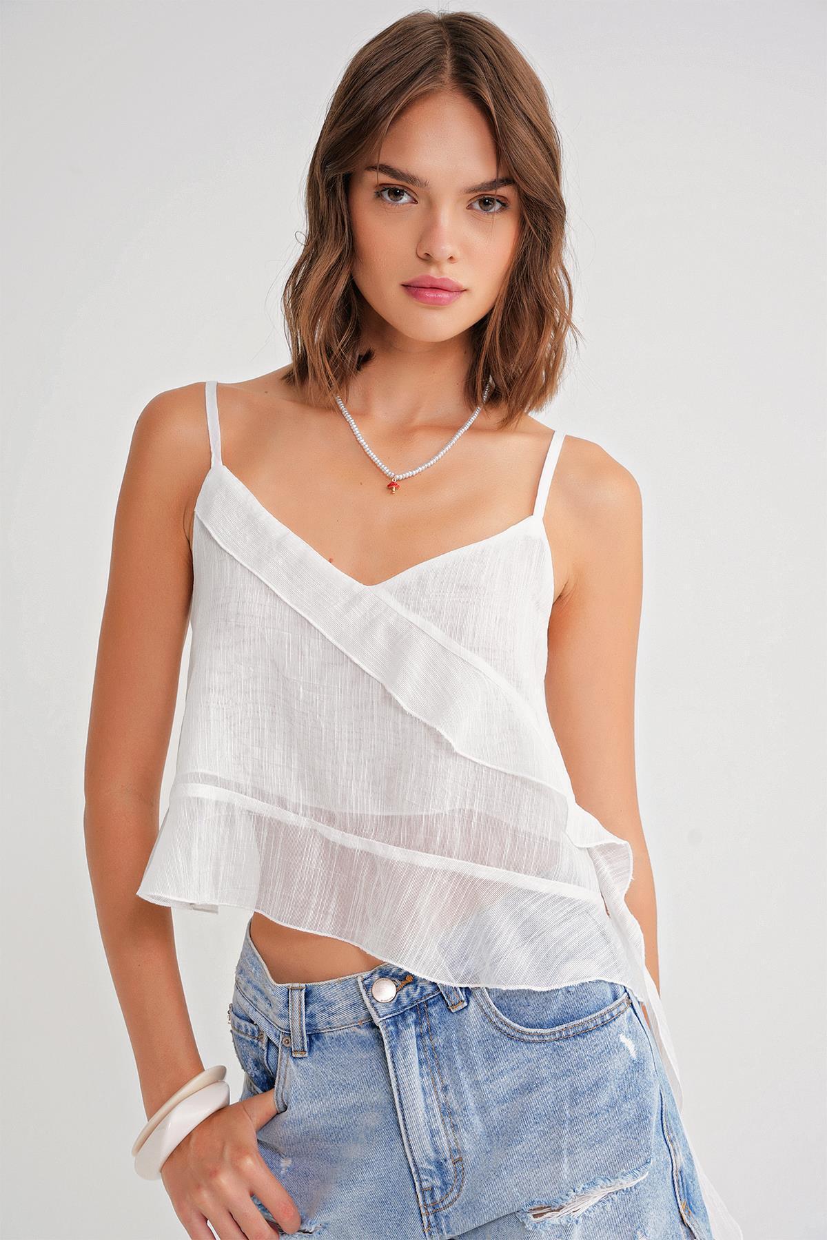 4736 Kadın Fırfırlı Askılı Bluz Bebe Mavi 4736 Kadın Fırfırlı Askılı Bluz Bebe Mavi Y25BLZ4736 L