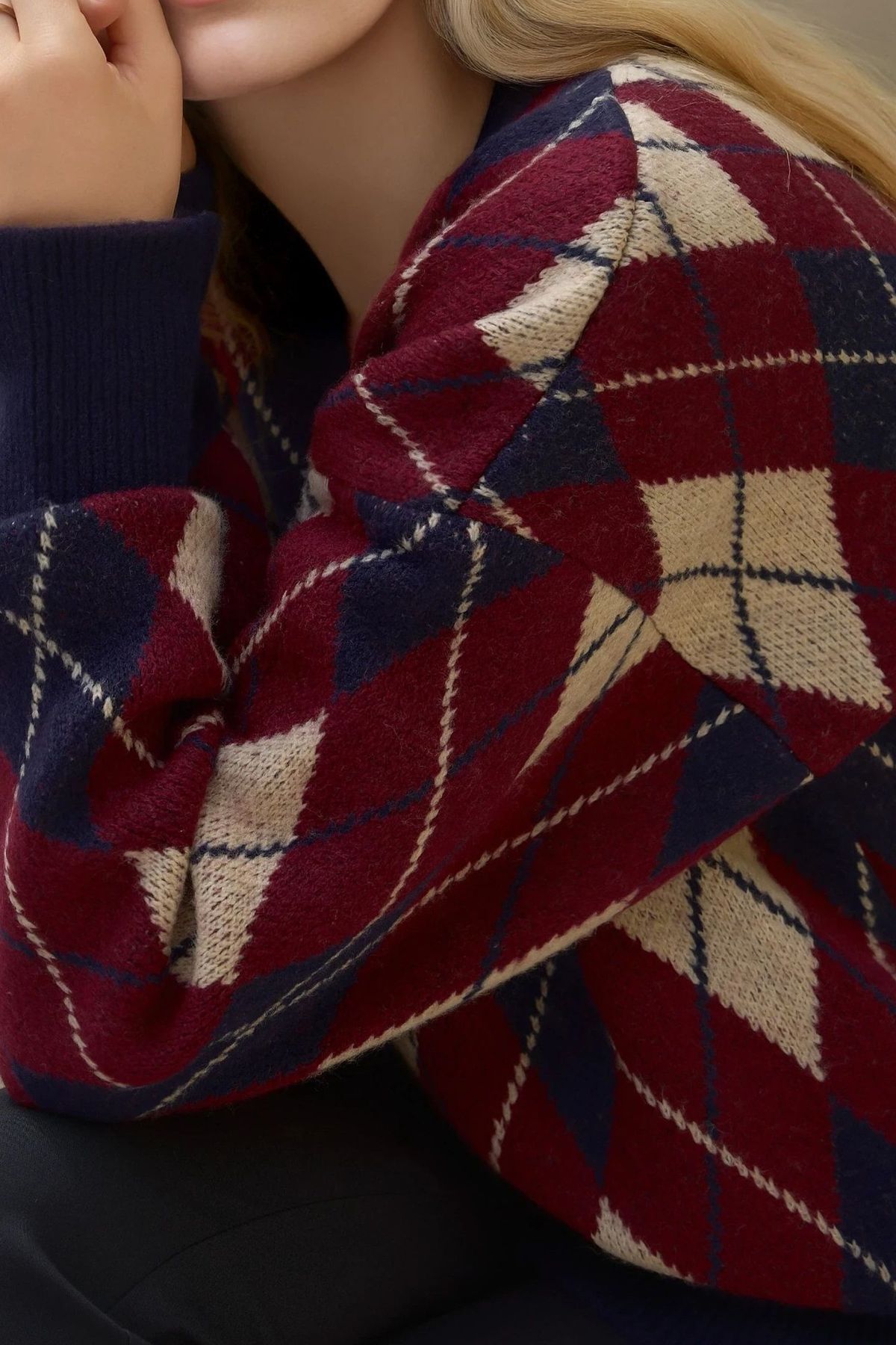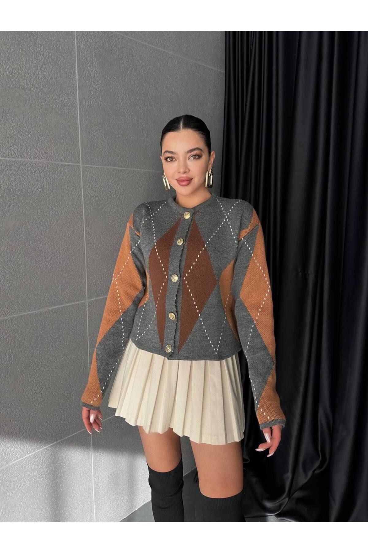 Düğmeli Uzun V-Yaka Geometrik Örme Hırka Düğmeli Uzun V-Yaka Geometrik Örme Hırka MAGMGXQC S/M