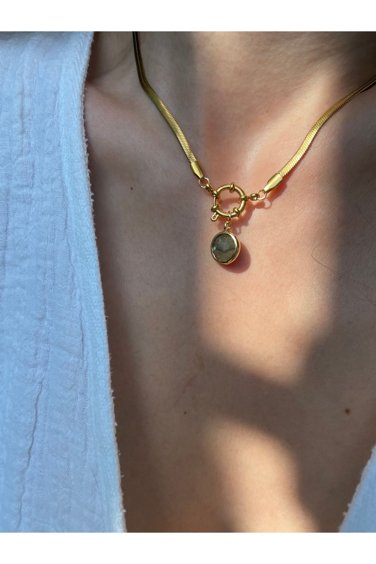 Oval Kesim Labradorit Gold Çelik Kolye Oval Kesim Labradorit Gold Çelik Kolye 8272626jsjsggnn تک سایز