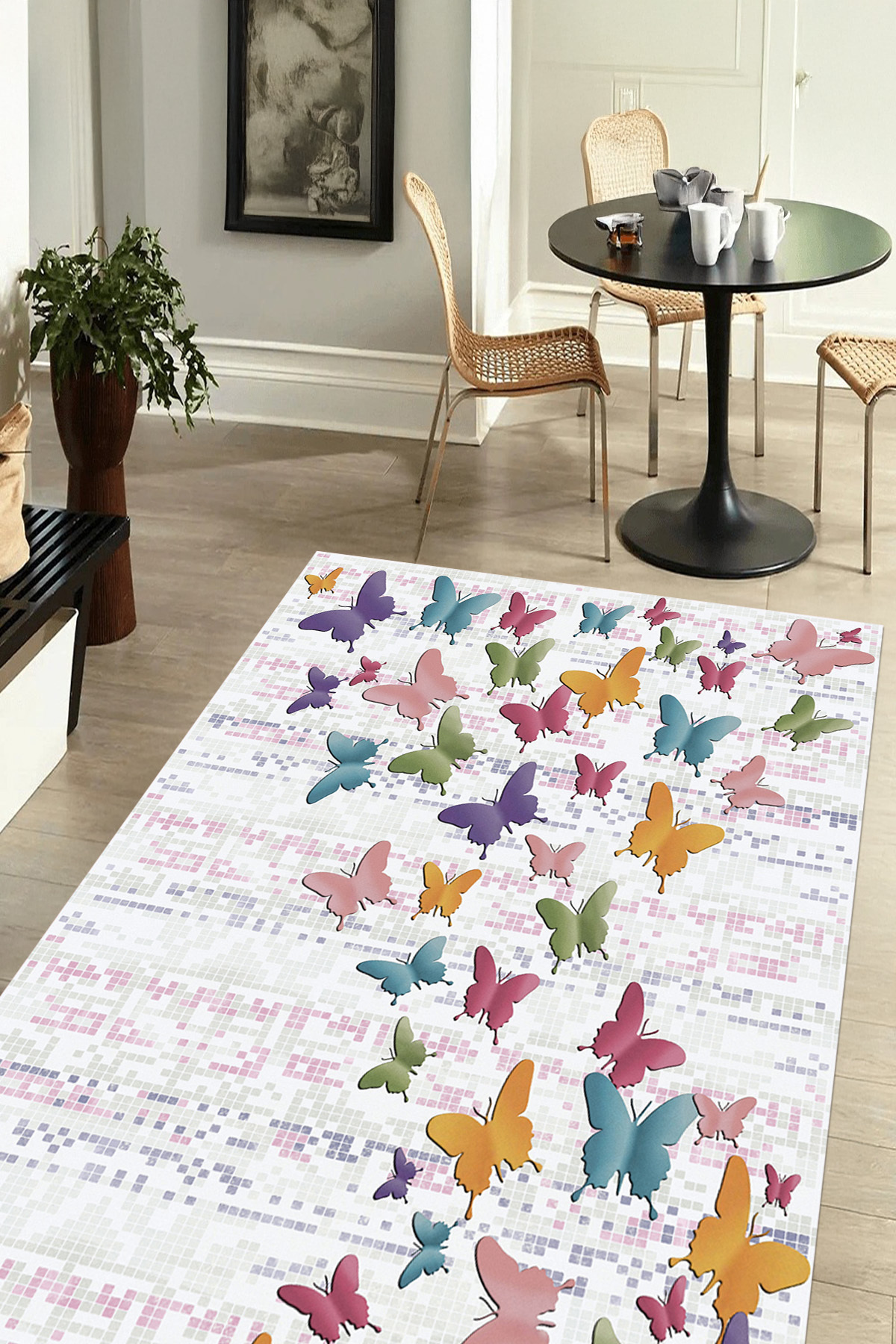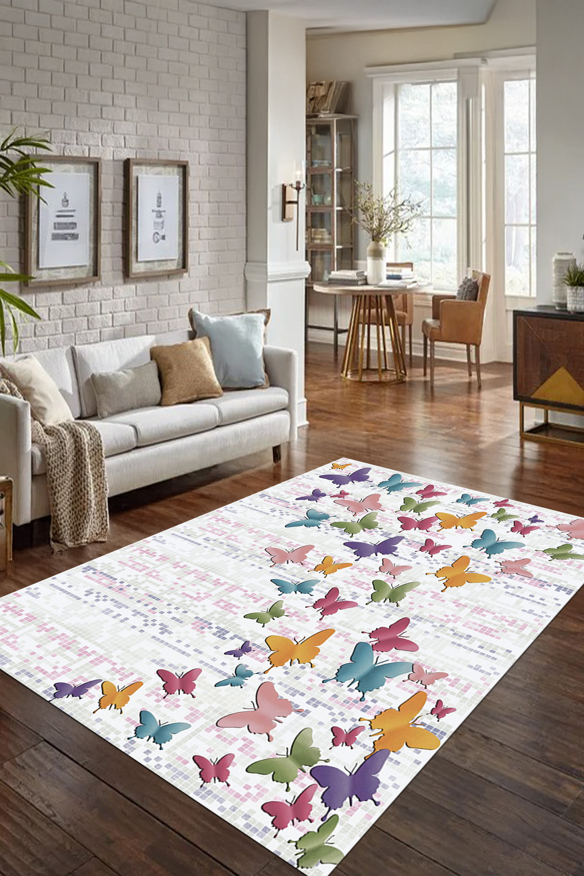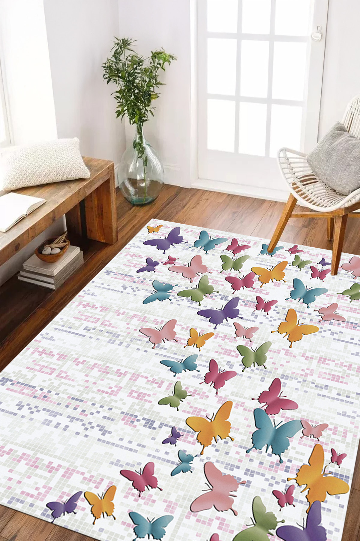 Dijital Baskılı Yıkanabilir ve Kaymaz Tabanlı Kelebek Desenli Modern Salon Halısı Dijital Baskılı Yıkanabilir ve Kaymaz Tabanlı Kelebek Desenli Modern Salon Halısı B MODERN 42 160 x 230