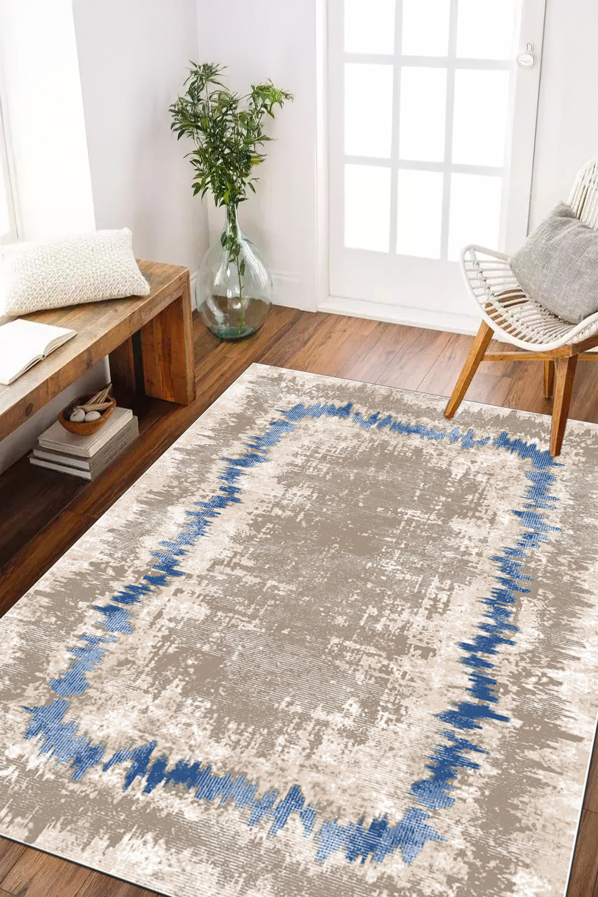 Dijital Baskılı Yıkanabilir ve Kaymaz Tabanlı Çerçeveli Sade Modern Salon Halısı Dijital Baskılı Yıkanabilir ve Kaymaz Tabanlı Çerçeveli Sade Modern Salon Halısı B MODERN 37 160 x 230