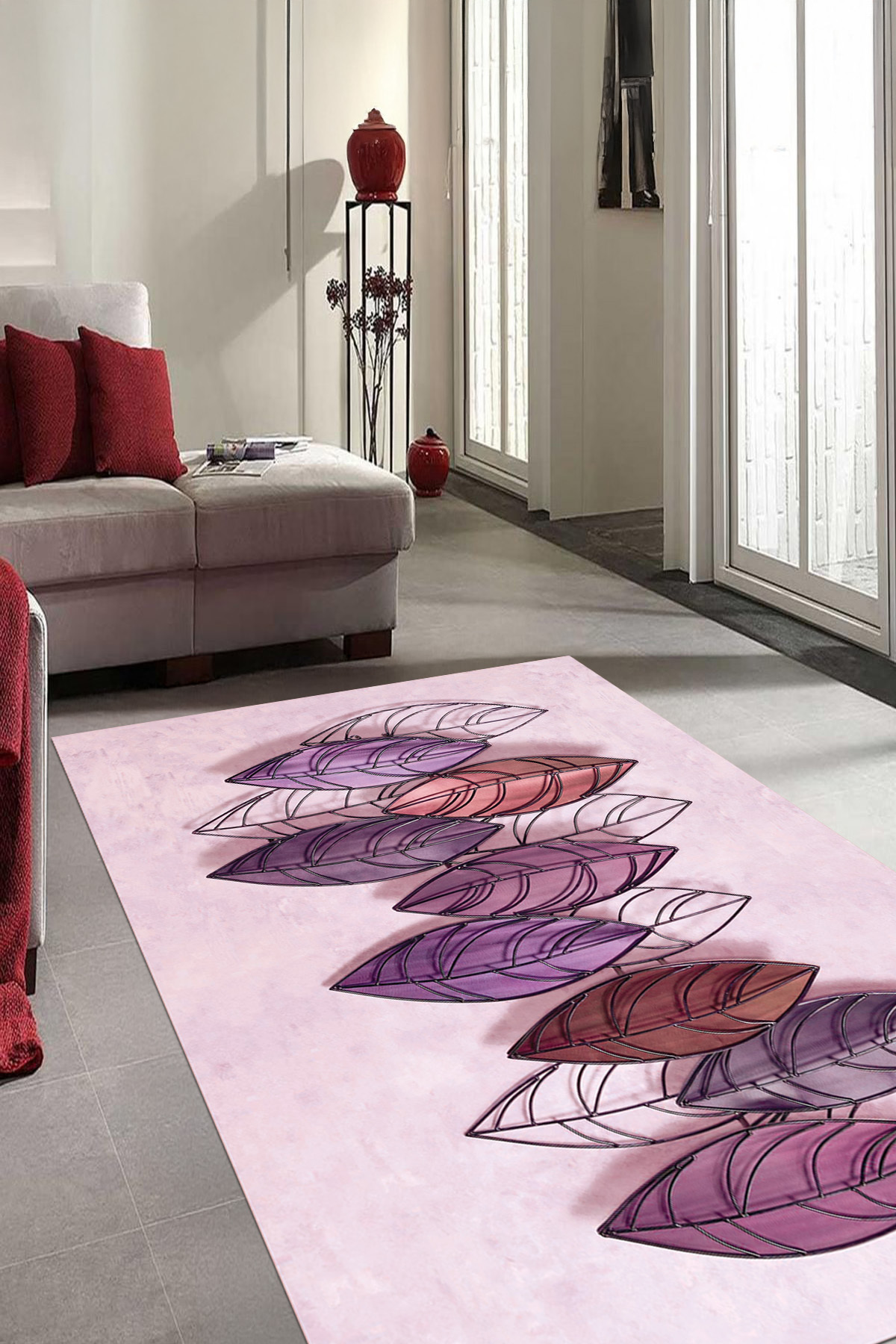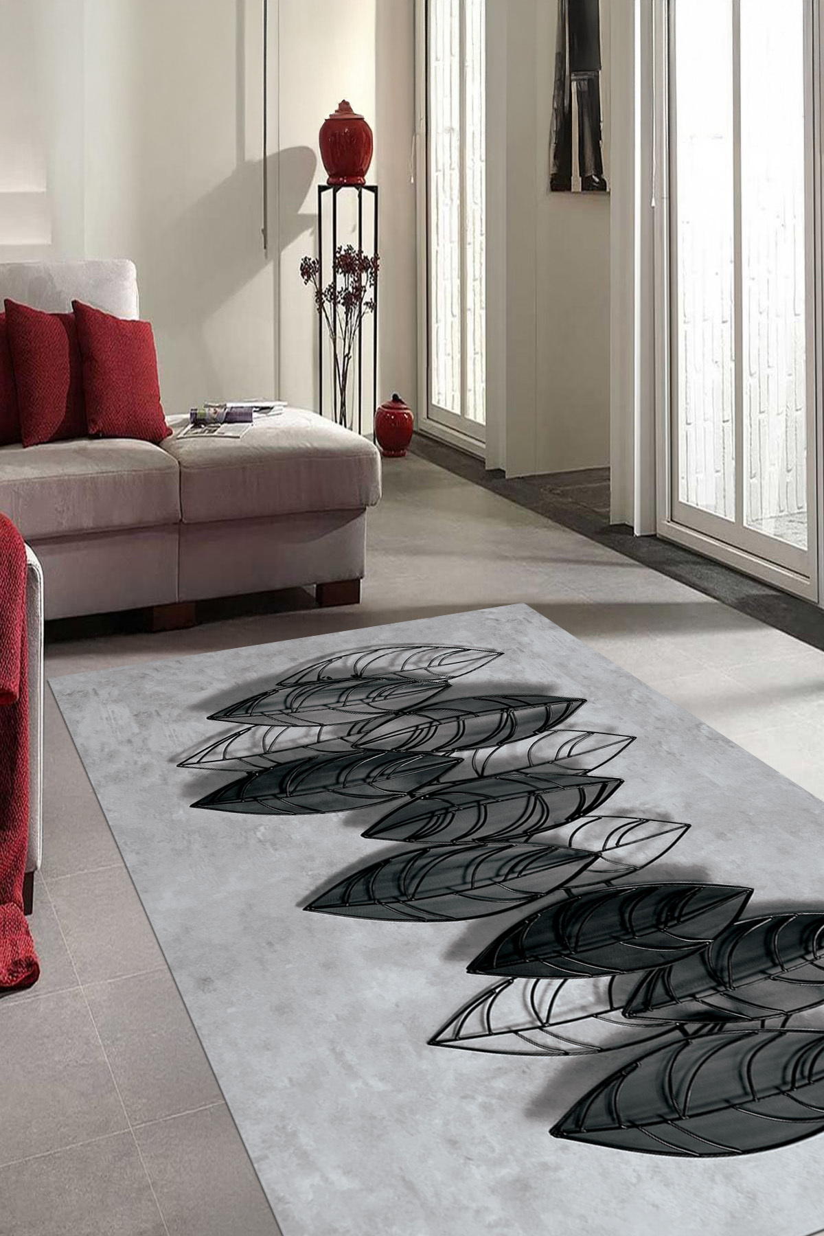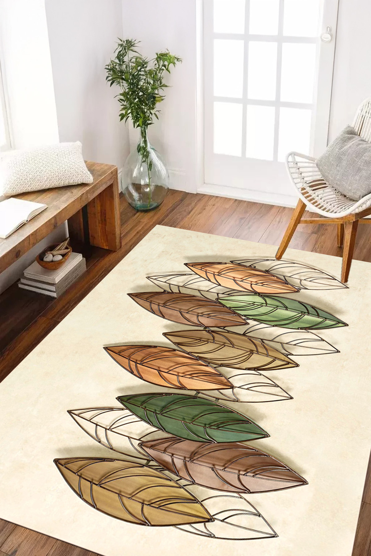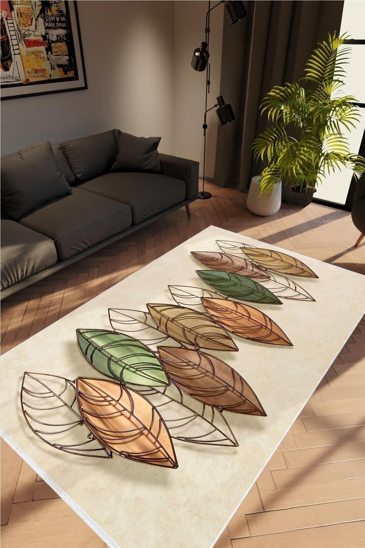 Dijital Baskılı Yıkanabilir ve Kaymaz Tabanlı Yaprak Desenli Modern Salon Halısı Dijital Baskılı Yıkanabilir ve Kaymaz Tabanlı Yaprak Desenli Modern Salon Halısı B MODERN 8 160 x 230