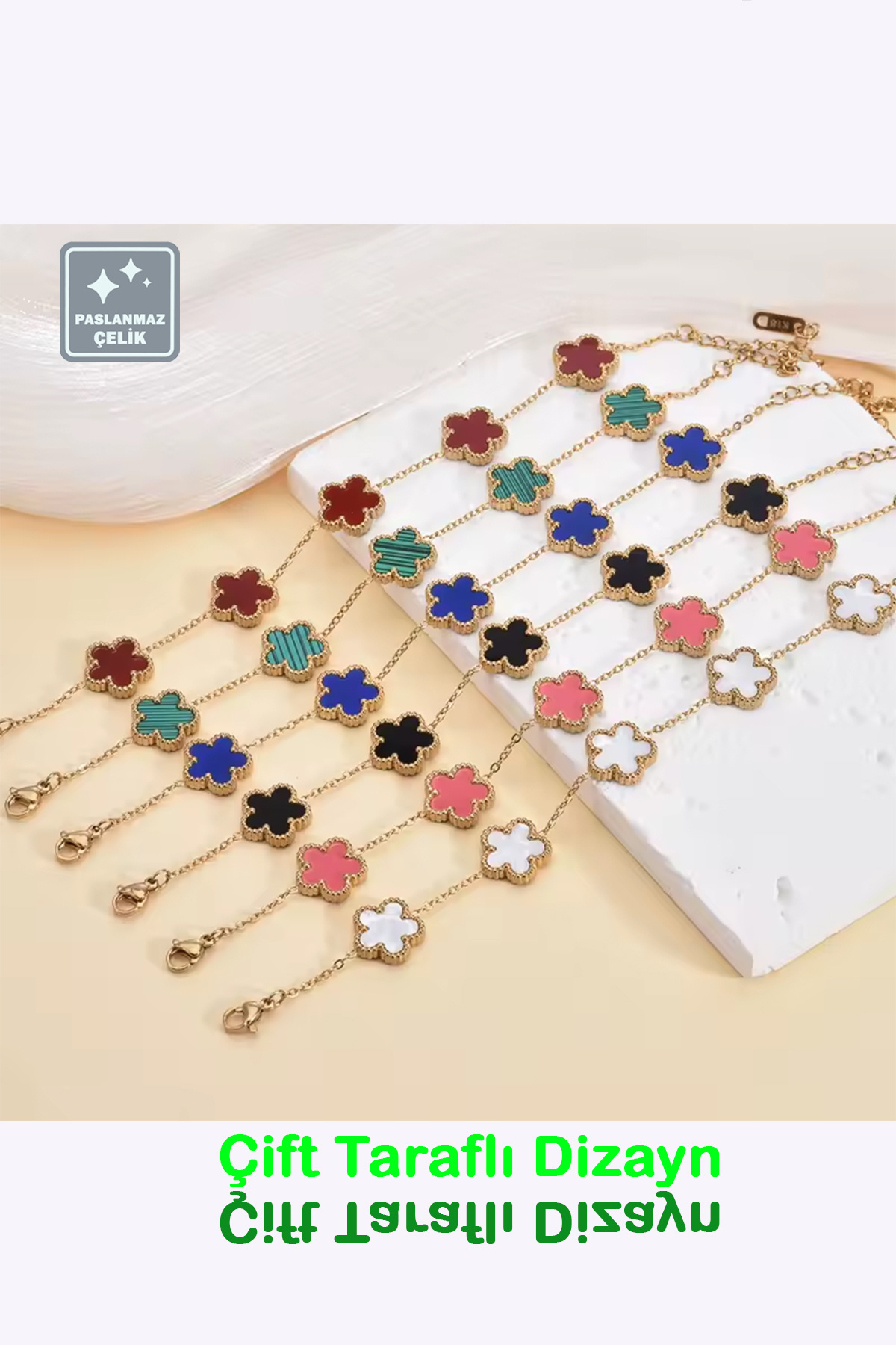 4 Yapraklı Yonca Çelik Bileklik - Desen1 Altın Minik 4 Yapraklı Yonca Çelik Bileklik - Desen1 Altın Minik MISSTBEE002 L