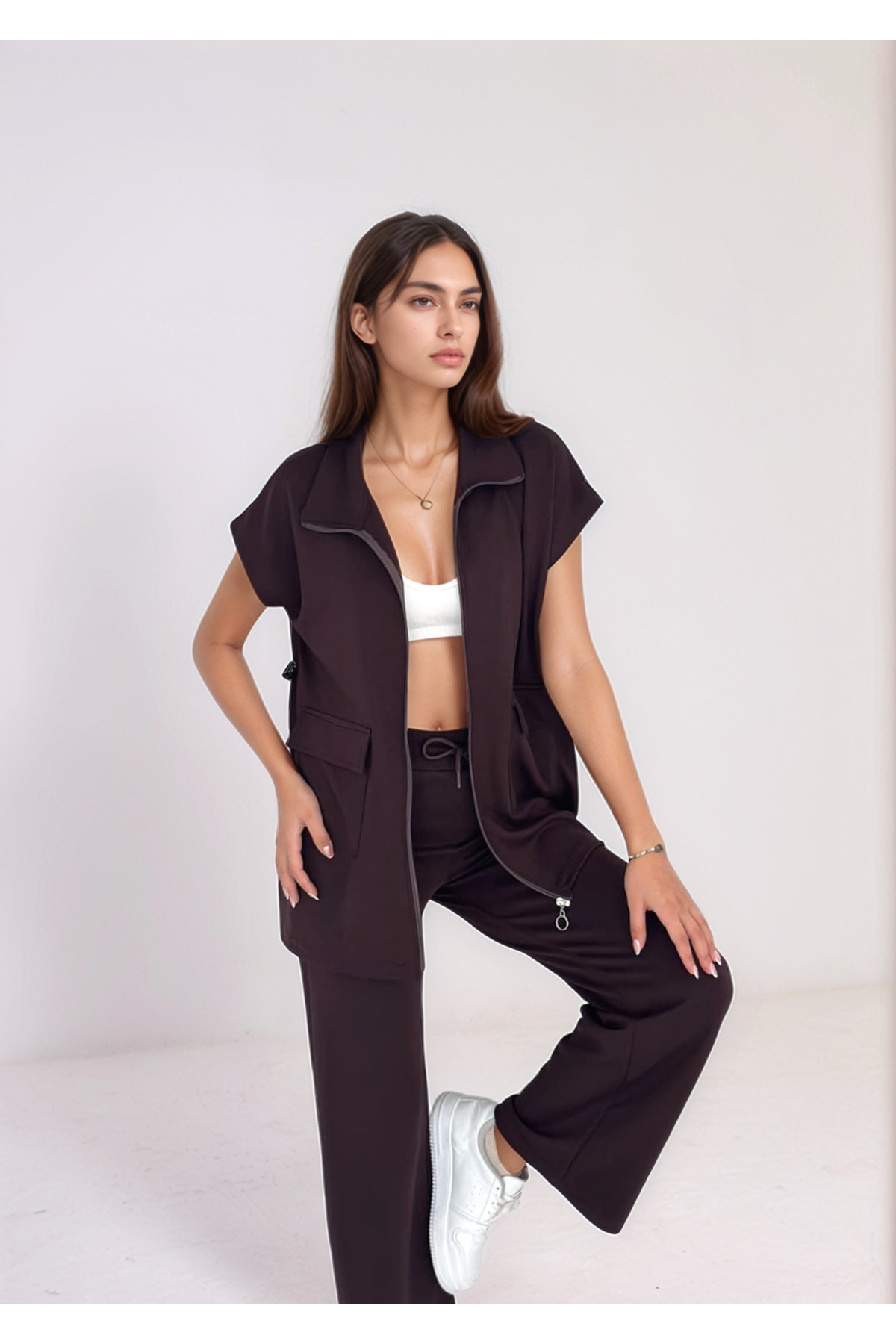 Kadın Fermuarlı Cepli İkili Modal Kumaş Takım Kadın Fermuarlı Cepli İkili Modal Kumaş Takım modalbled1 2XL