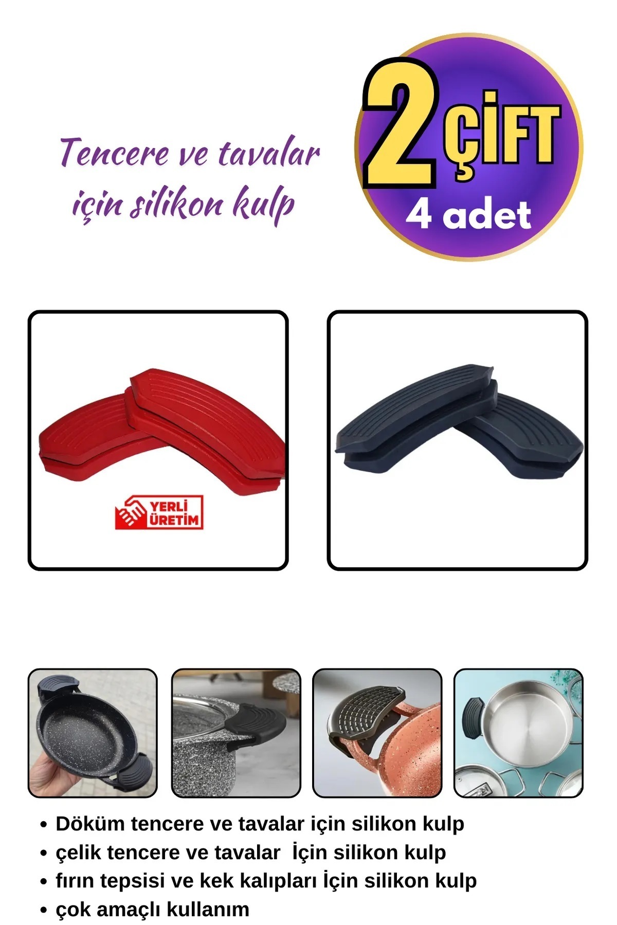 Silikon Tencere Tava Tutacağı Yanmaz Yapışmaz Tutamaç Eldiven 9x4 cm renkli 2 Çift 4 Adetten Oluşur Silikon Tencere Tava Tutacağı Yanmaz Yapışmaz Tutamaç Eldiven 9x4 cm renkli 2 Çift 4 Adetten Oluşur 2renkli تک سایز