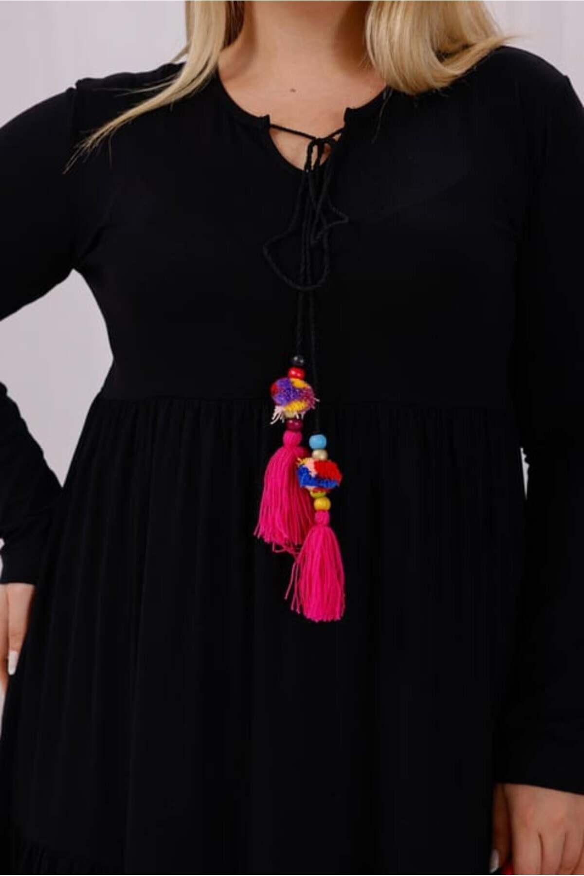 Kadın Büyük Beden V Oyuk Yaka Püskül Ponpon Bağlama Uzun Kol Viskon Esnek Elbise Kadın Büyük Beden V Oyuk Yaka Püskül Ponpon Bağlama Uzun Kol Viskon Esnek Elbise BT25YB111771 4XL