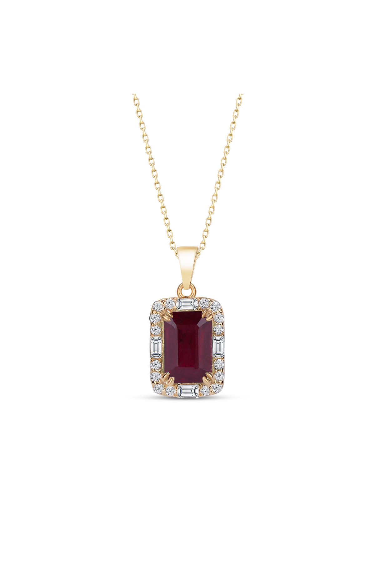 925 Ayar Gümüş Yakut Kolye, Baget Taşlı Altın Kaplama Kolye, Kadınlar için özel gün hediyeleri 925 Ayar Gümüş Yakut Kolye, Baget Taşlı Altın Kaplama Kolye, Kadınlar için özel gün hediyeleri BGTY-RUBY-KLY 50