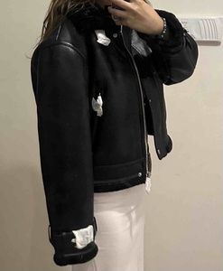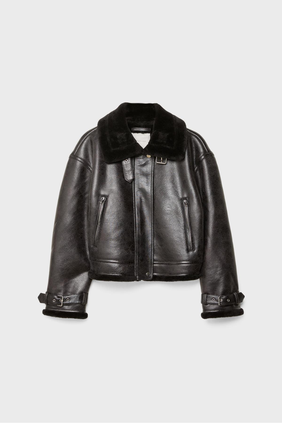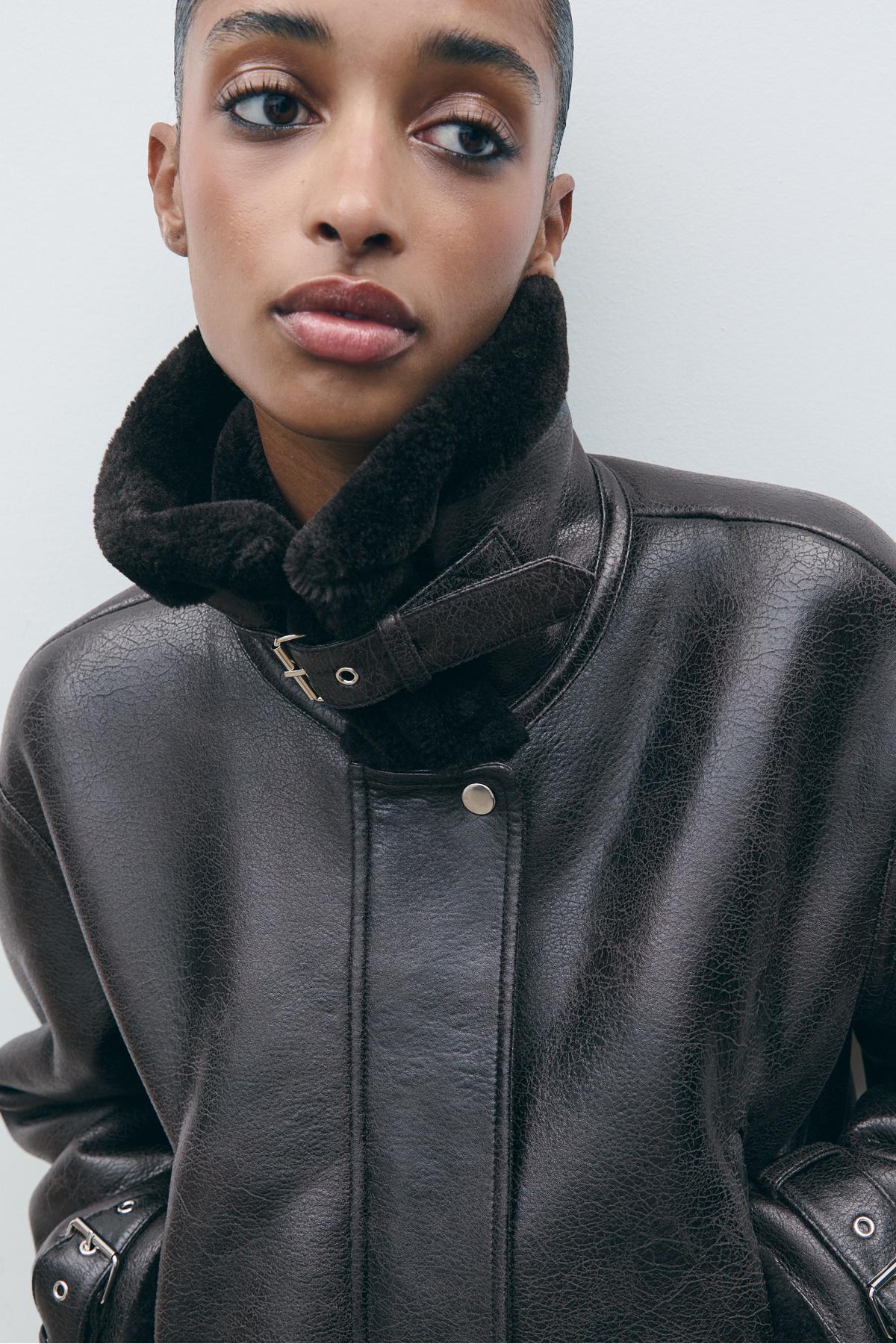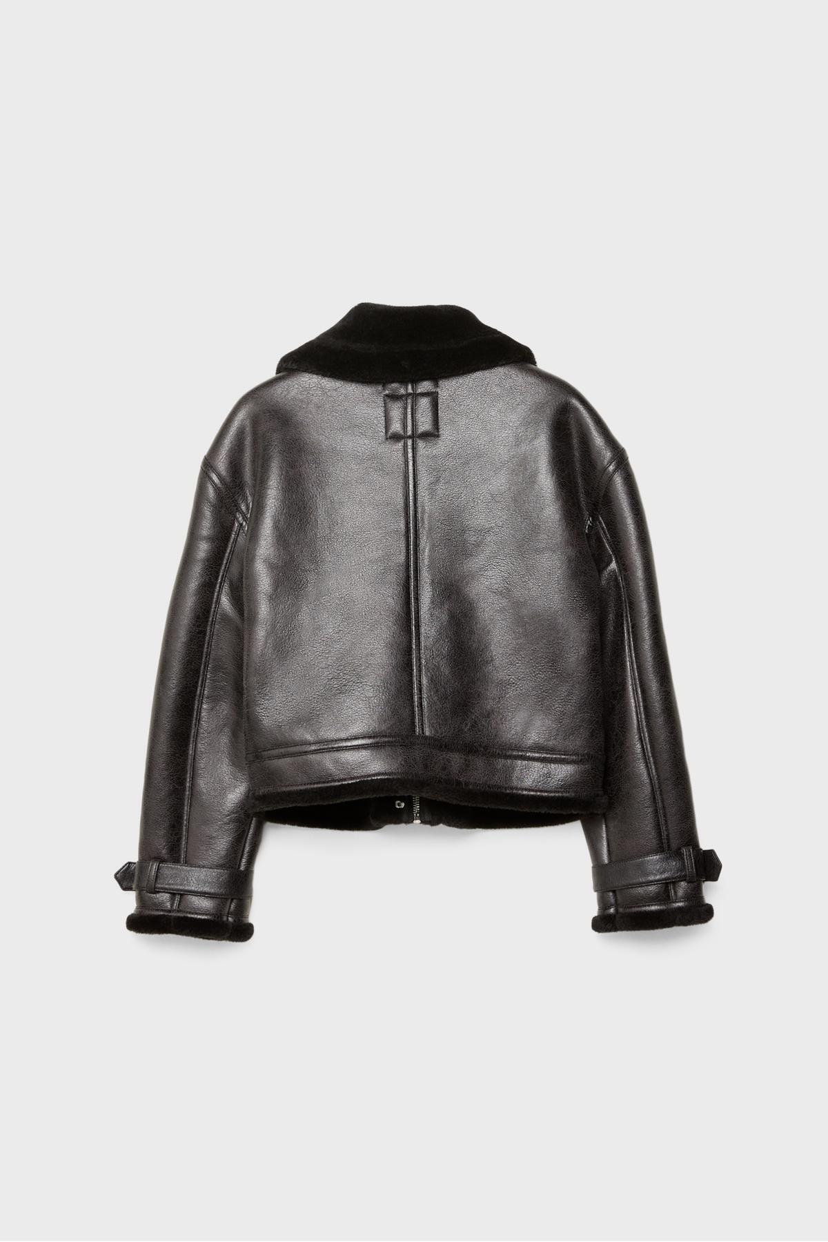 İçi kürklü deri görünümlü kısa ceket İçi kürklü deri görünümlü kısa ceket 05753176 XL