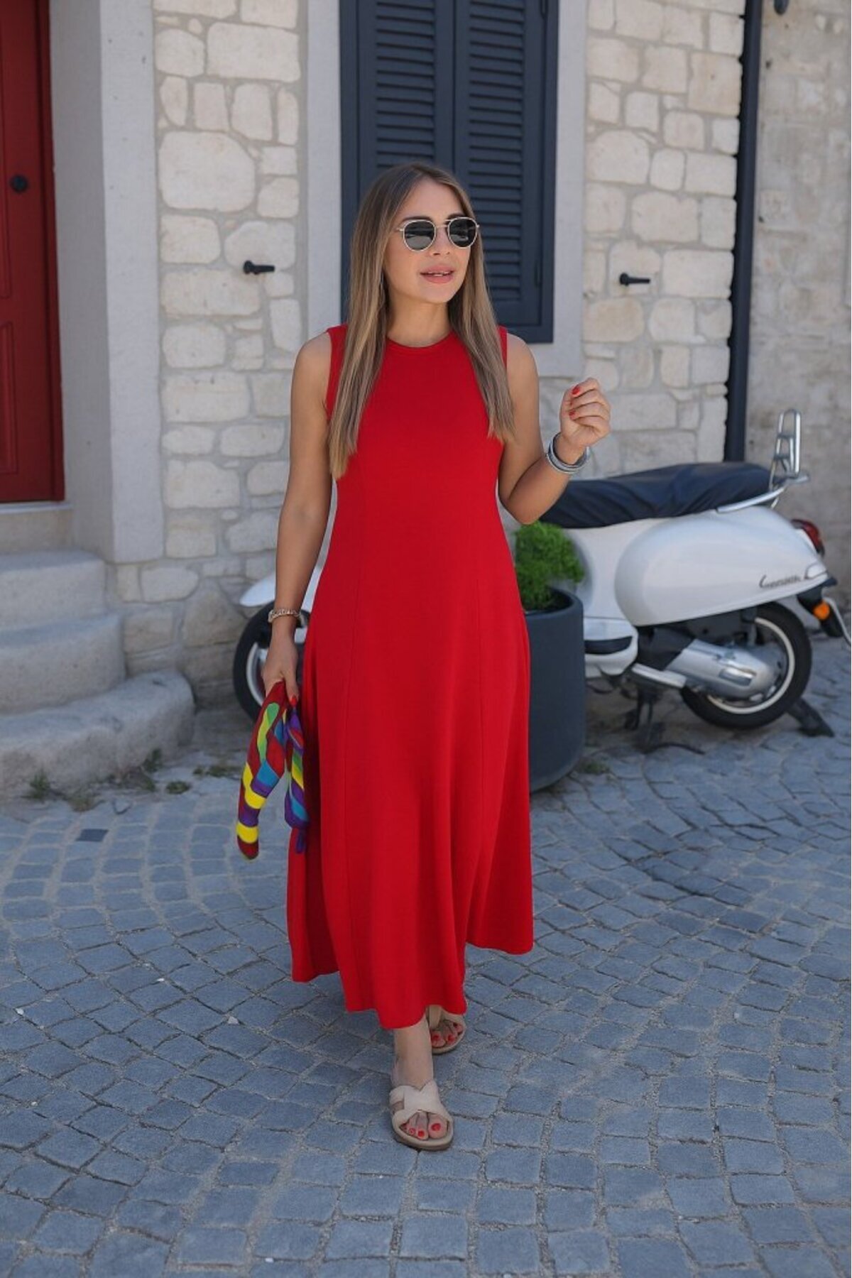 Kadın Sıfır Kollu Bisiklet Yaka Viskon Elbise Kadın Sıfır Kollu Bisiklet Yaka Viskon Elbise ABE-687b38afd3ee7 2XL-3XL
