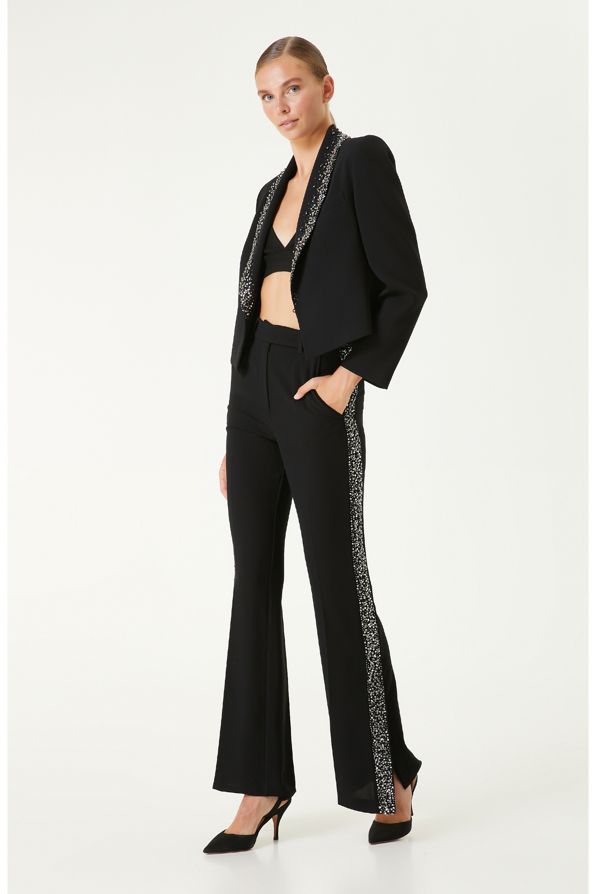 Siyah Paçası Yırtmaçlı Pantolon Siyah Paçası Yırtmaçlı Pantolon 1096452 44