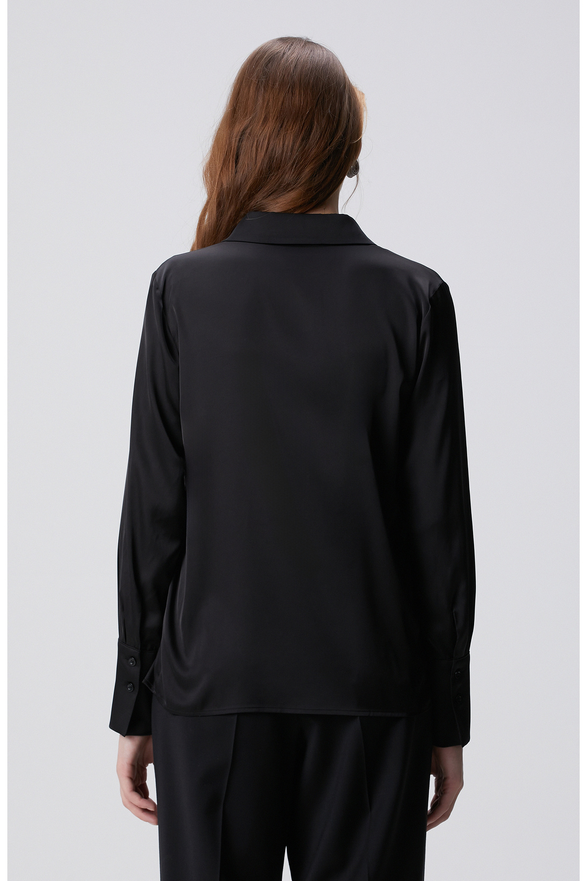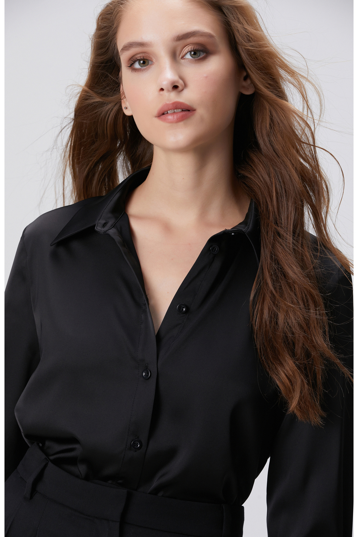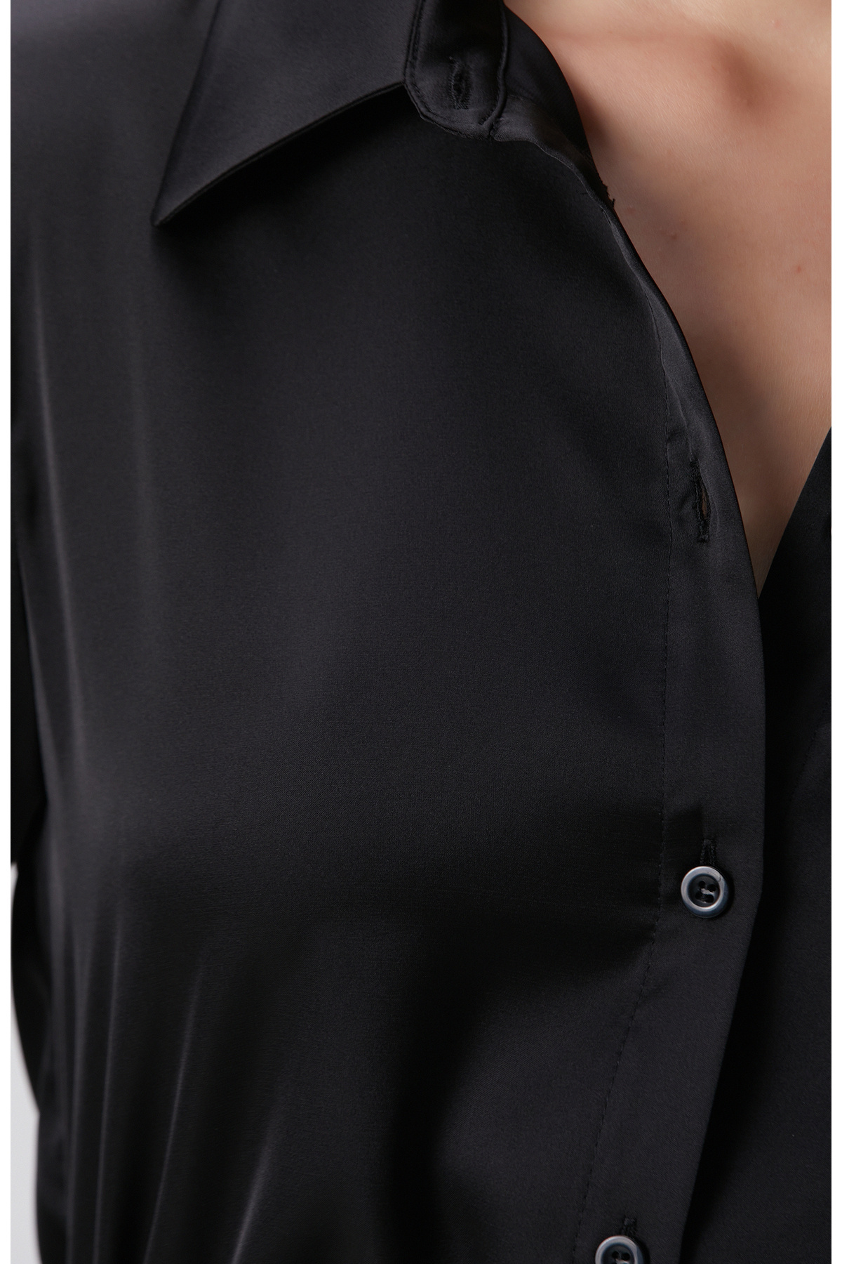 Siyah Geniş Manşetli Saten Gömlek Siyah Geniş Manşetli Saten Gömlek 1097389 XL