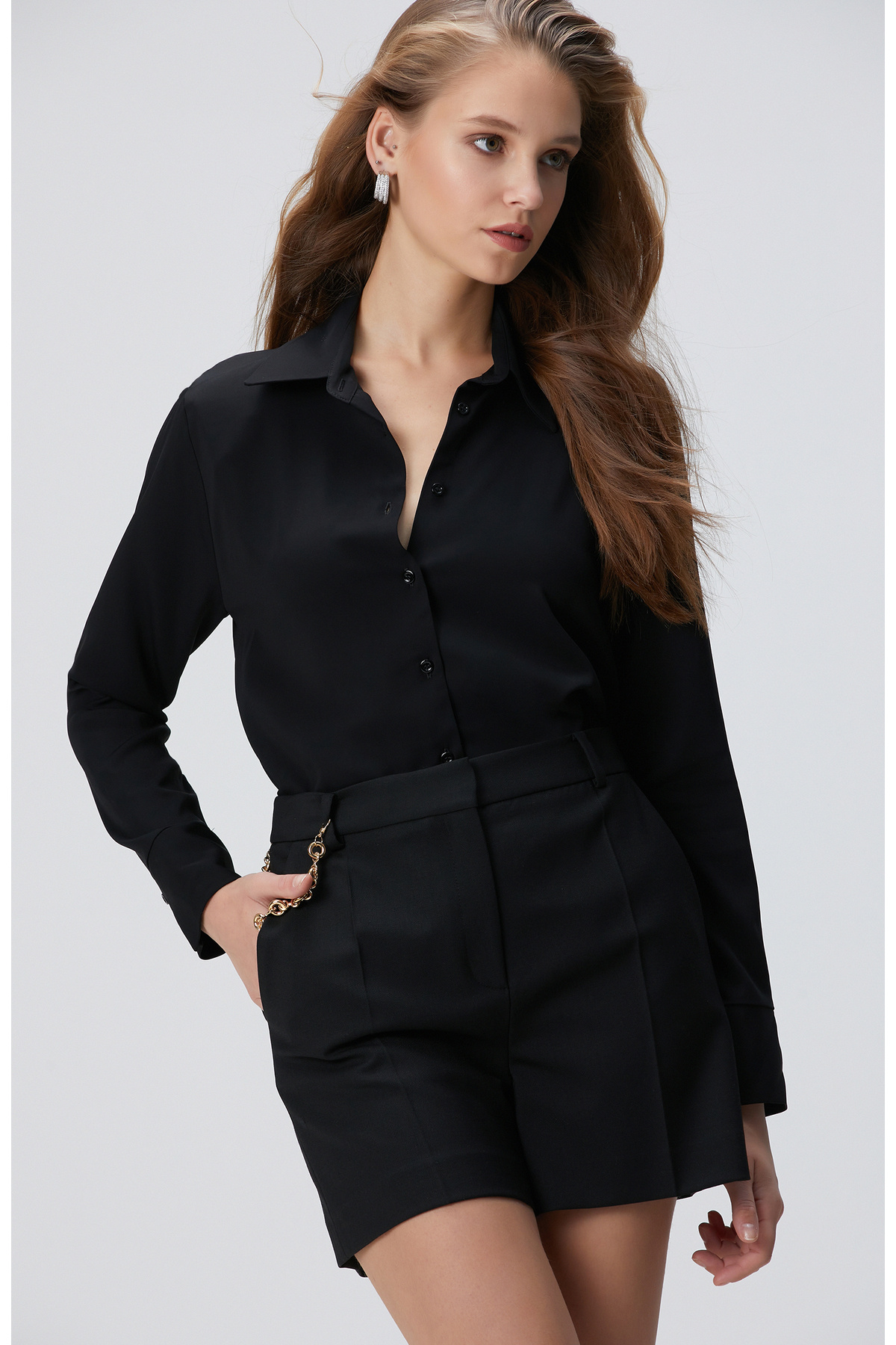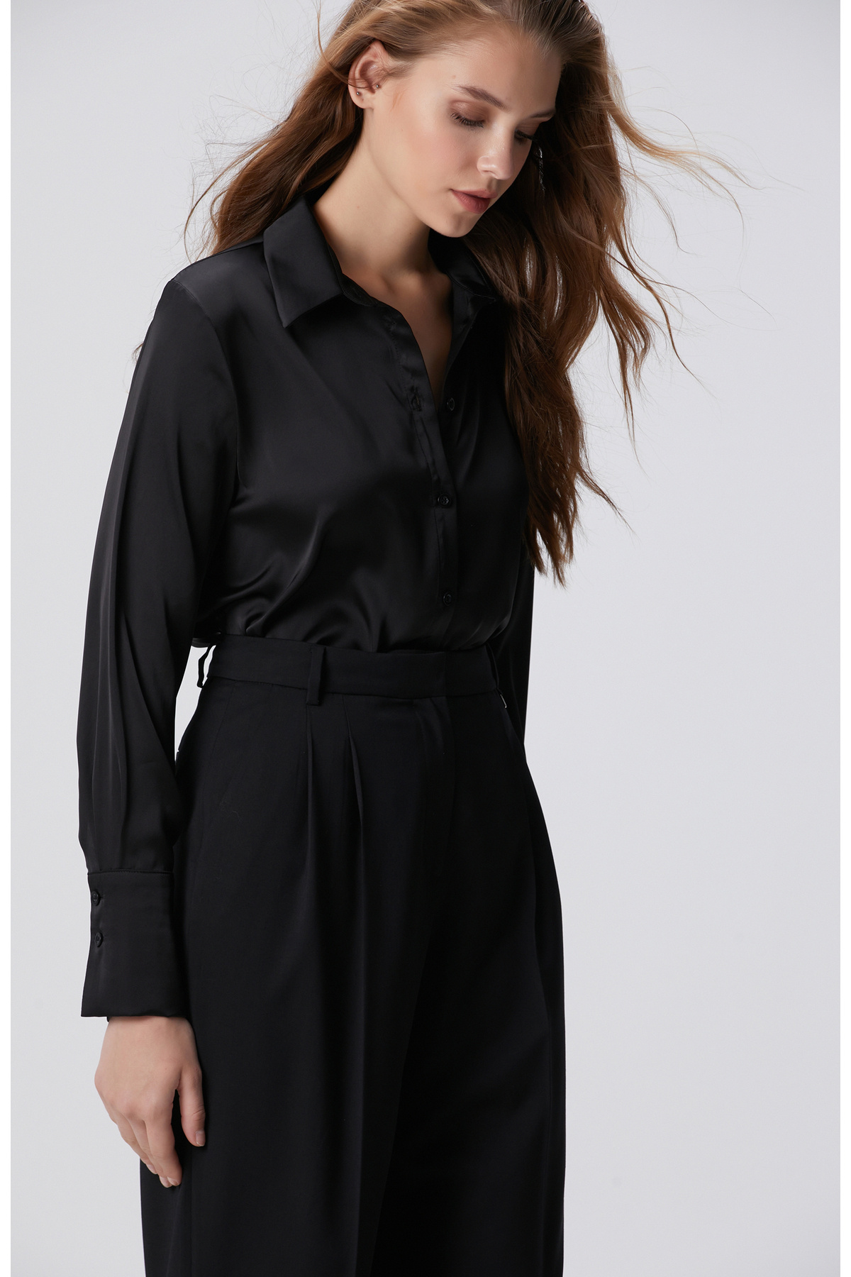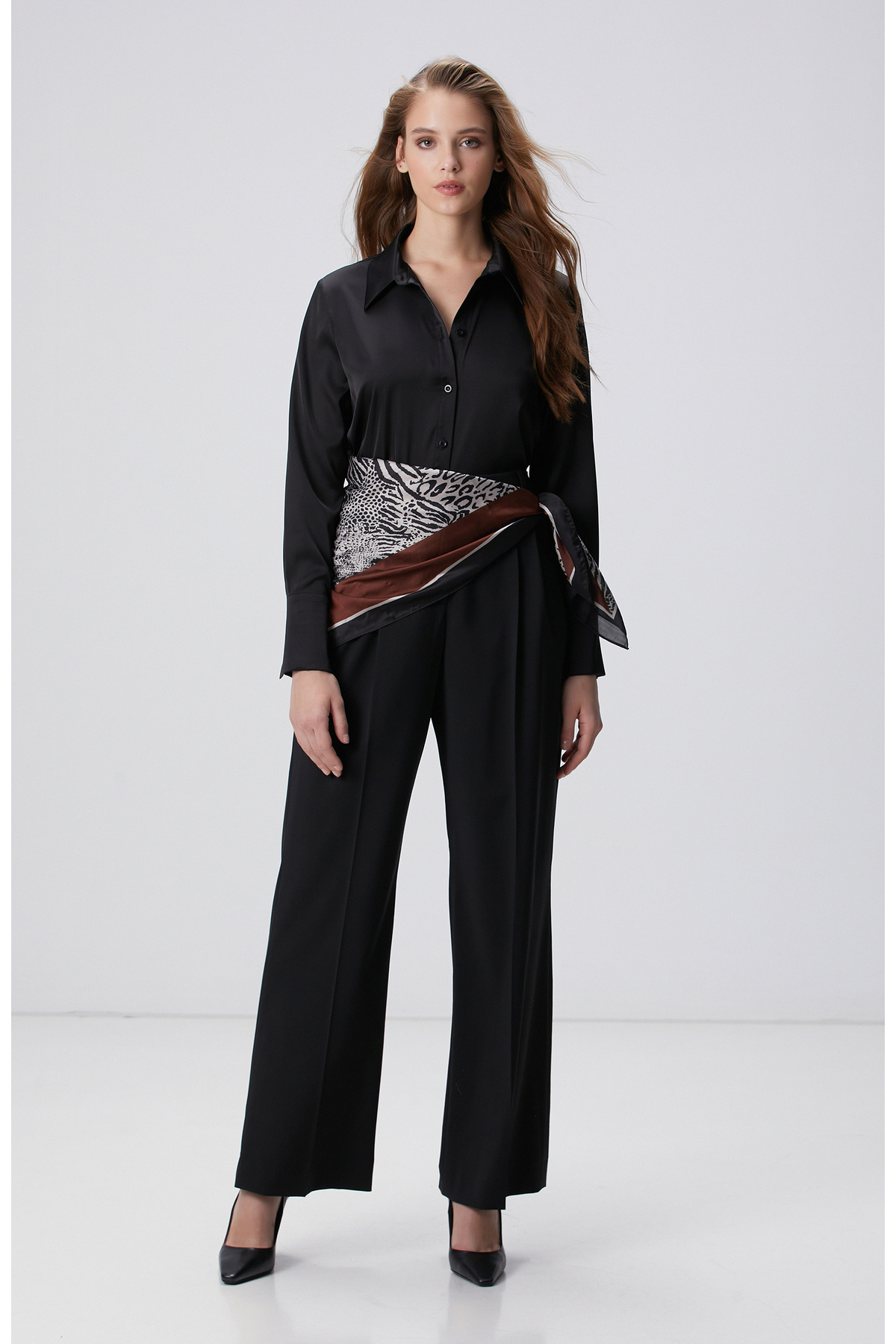 Siyah Geniş Manşetli Saten Gömlek Siyah Geniş Manşetli Saten Gömlek 1097389 XL