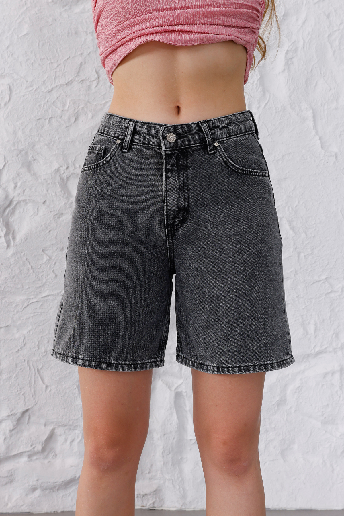 Kadın Yüksek Bel Straight Fit Şort Jeans Kadın Yüksek Bel Straight Fit Şort Jeans ALN00000050 44