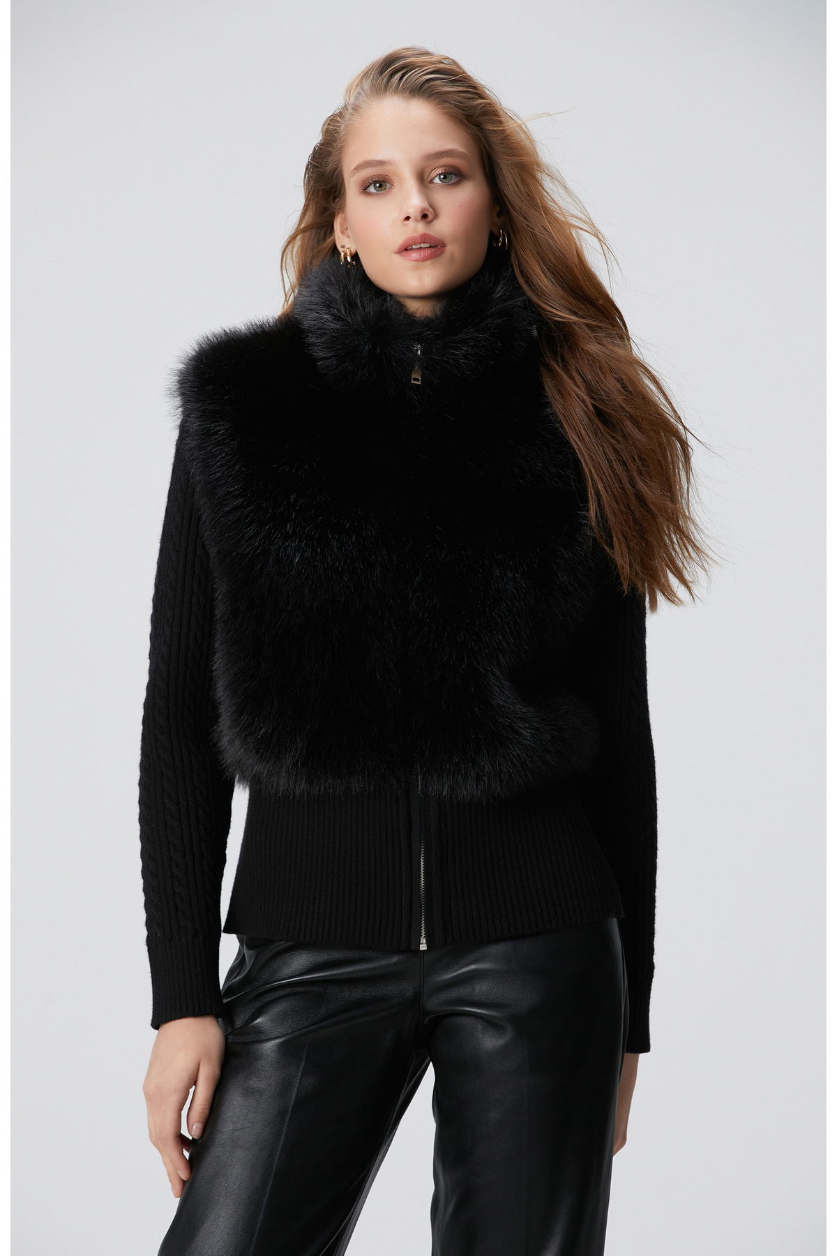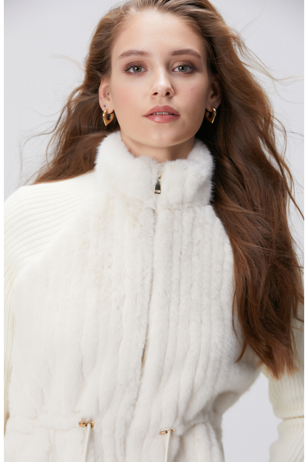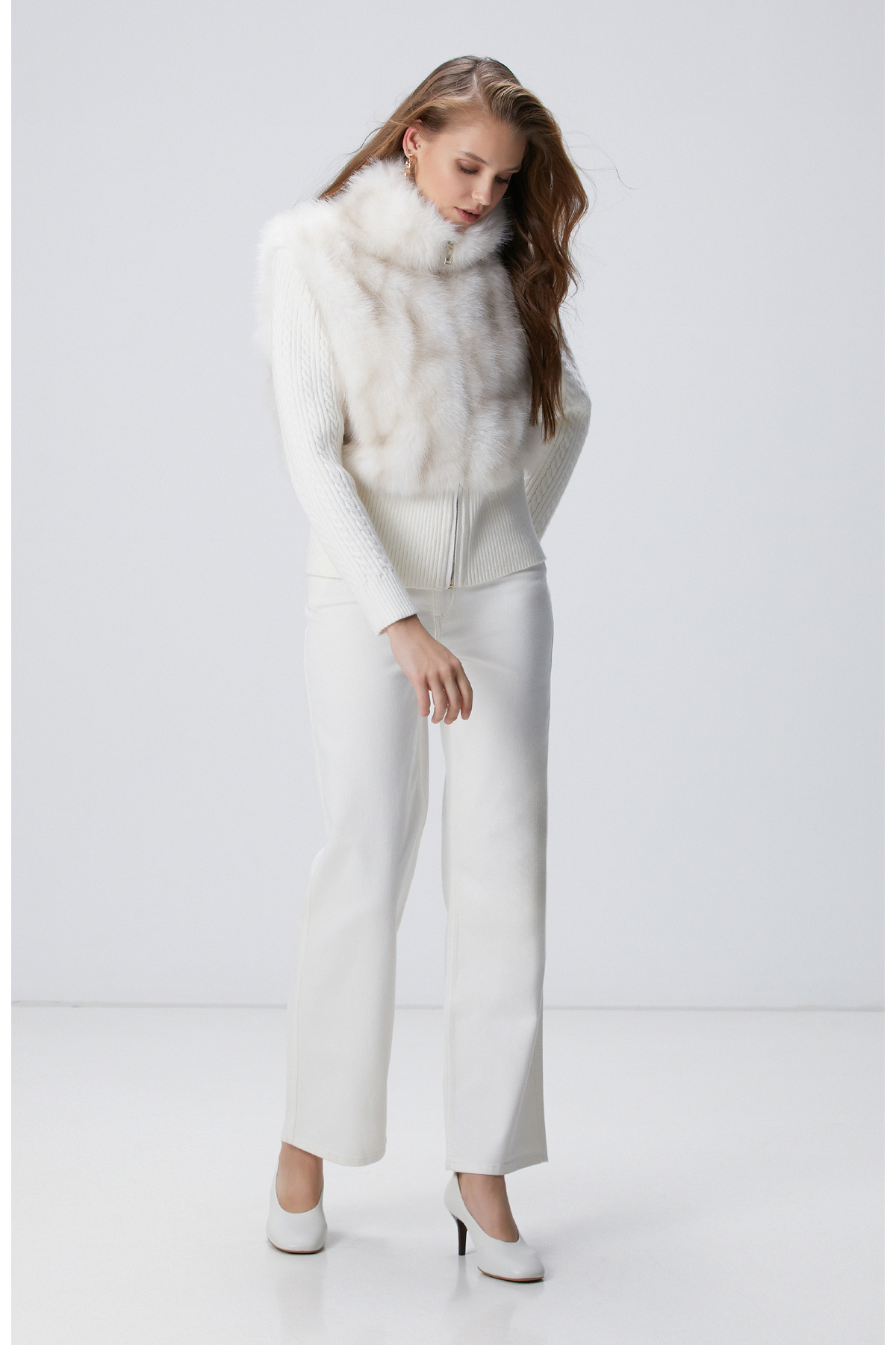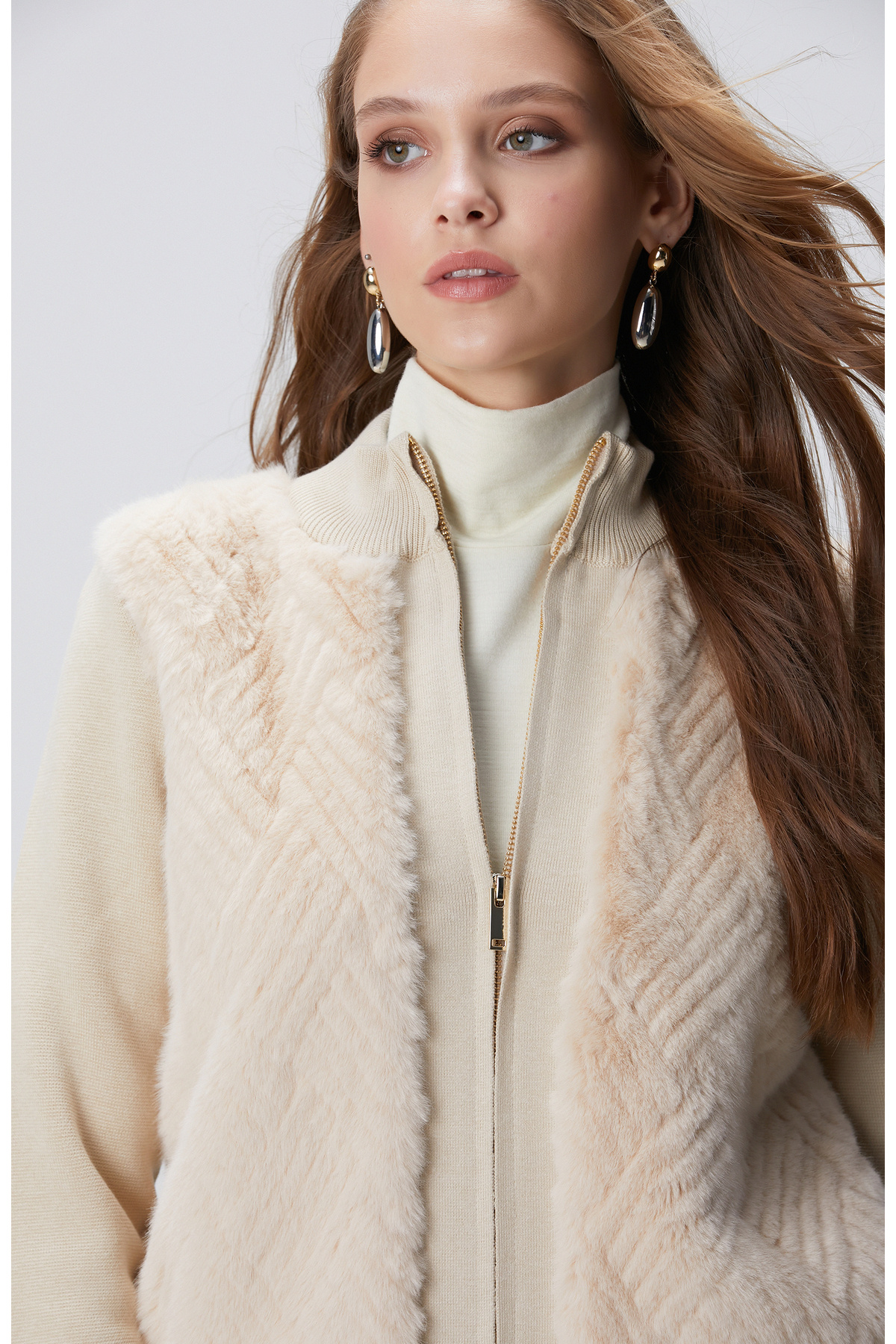 Kırık Beyaz Suni Kürk Detaylı Triko Mont Kırık Beyaz Suni Kürk Detaylı Triko Mont 1095670 XL