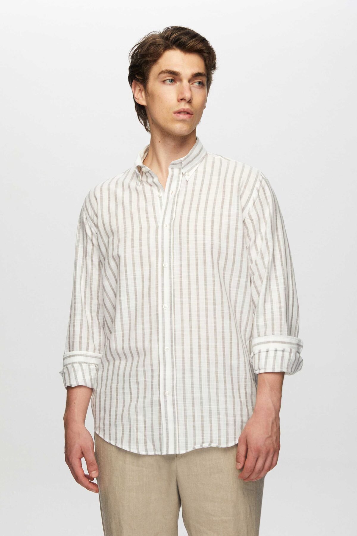 Ds Damat Slim Fit Gri Çizgili %100 Pamuk Yazlık Keten Gömlek Ds Damat Slim Fit Gri Çizgili %100 Pamuk Yazlık Keten Gömlek 0HC02ORT06265 2XL