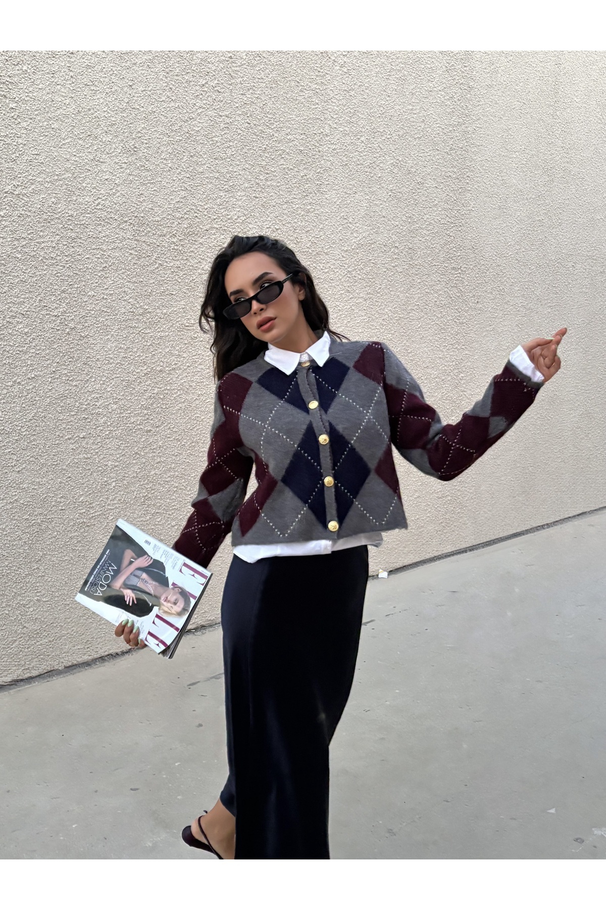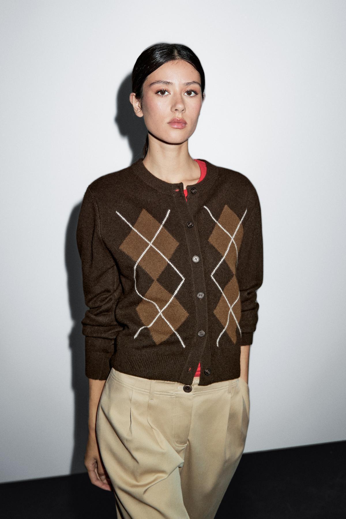 Baklava desenli triko hırka Baklava desenli triko hırka 00110779205710500 L