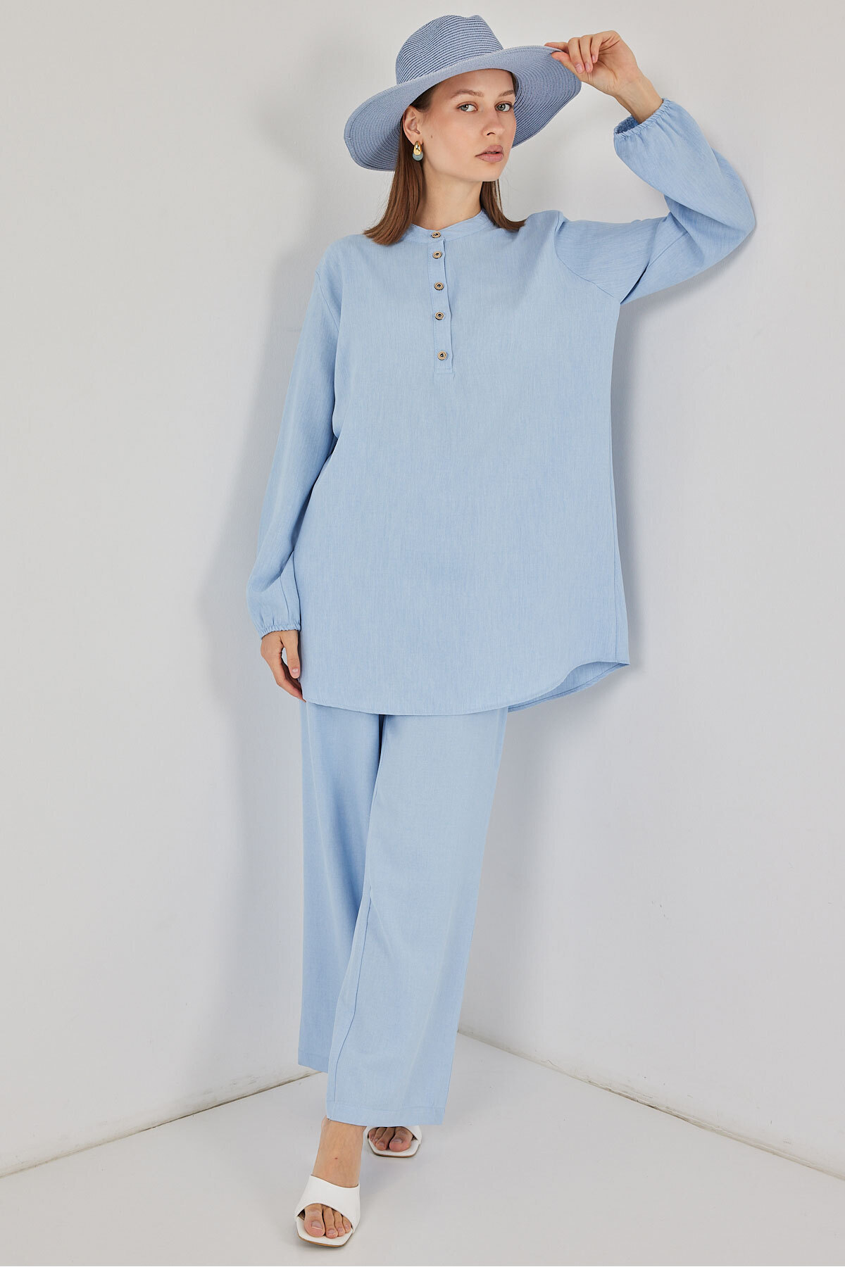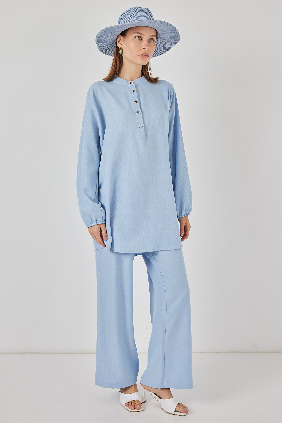 6678 Keten Tunik Pantolon İkili Takım - Mavi 6678 Keten Tunik Pantolon İkili Takım - Mavi 6678BGD19 42