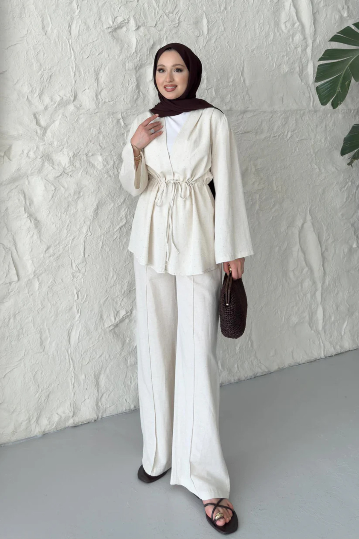 Taşlı Bol Paça Pantolonlu Tünel Bağcıklı Kimono Takım Taşlı Bol Paça Pantolonlu Tünel Bağcıklı Kimono Takım 1025 L/XL