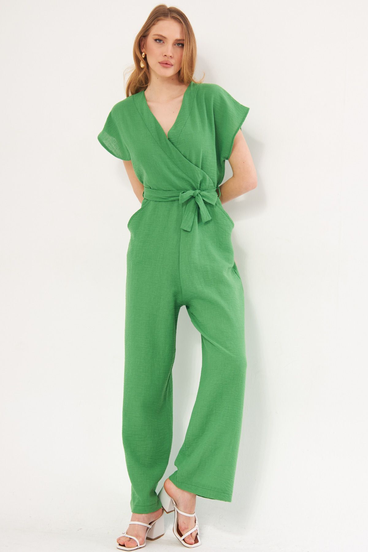 Kadın Açık Yeşil Ön Arka V Yaka Askılı Beli Lastikli Cepli Astarlı Tulum ARM-24Y001100 Kadın Açık Yeşil Ön Arka V Yaka Askılı Beli Lastikli Cepli Astarlı Tulum ARM-24Y001100 XL