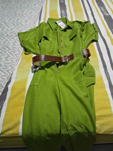Kadın Yağ Yeşili Önden Düğmeli Beli Kuşaklı Cepli Yarasa Kol Palazzo Tulum ARM-24Y001105 Kadın Yağ Yeşili Önden Düğmeli Beli Kuşaklı Cepli Yarasa Kol Palazzo Tulum ARM-24Y001105 XL