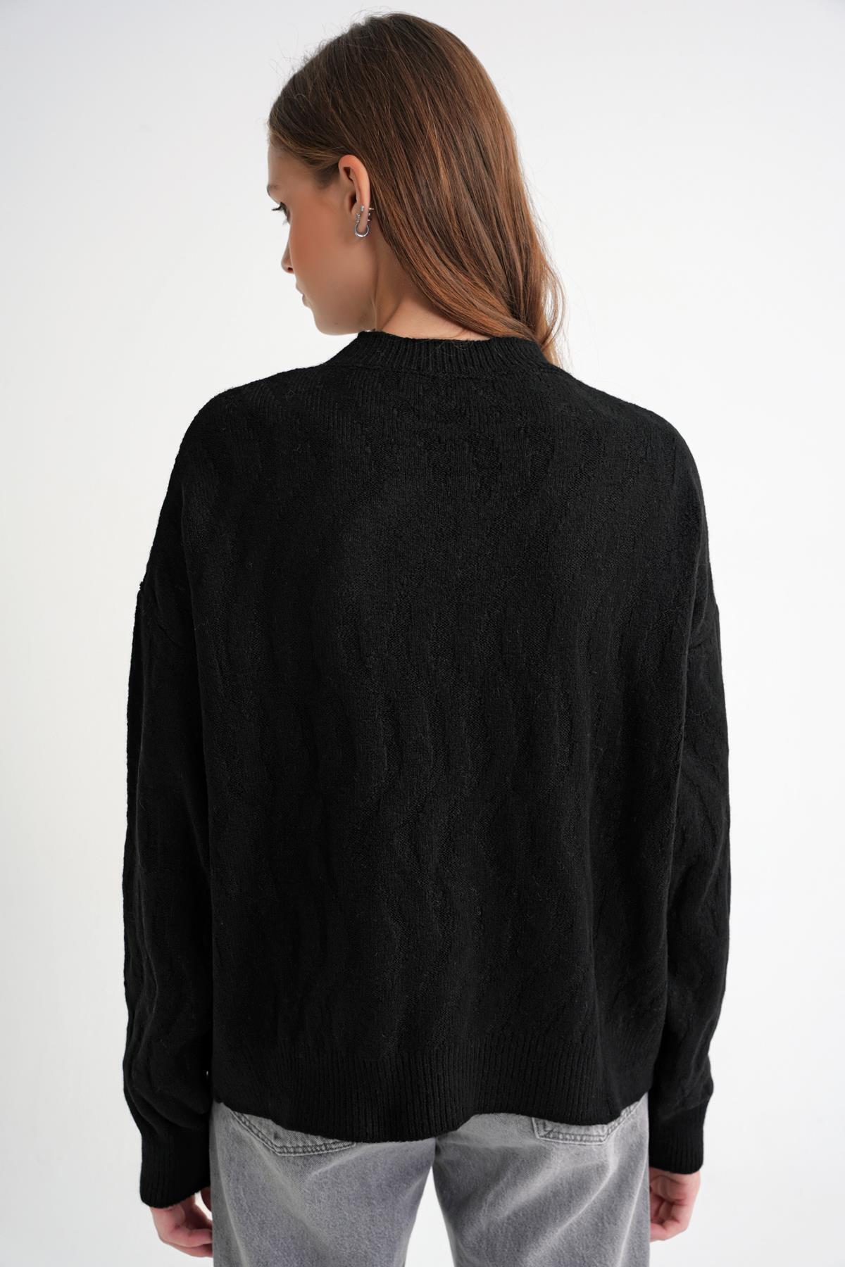 6947 Kadın Kendinden Desenli Oversize Triko Kazak Siyah 6947 Kadın Kendinden Desenli Oversize Triko Kazak Siyah K25KZK6947 Standart