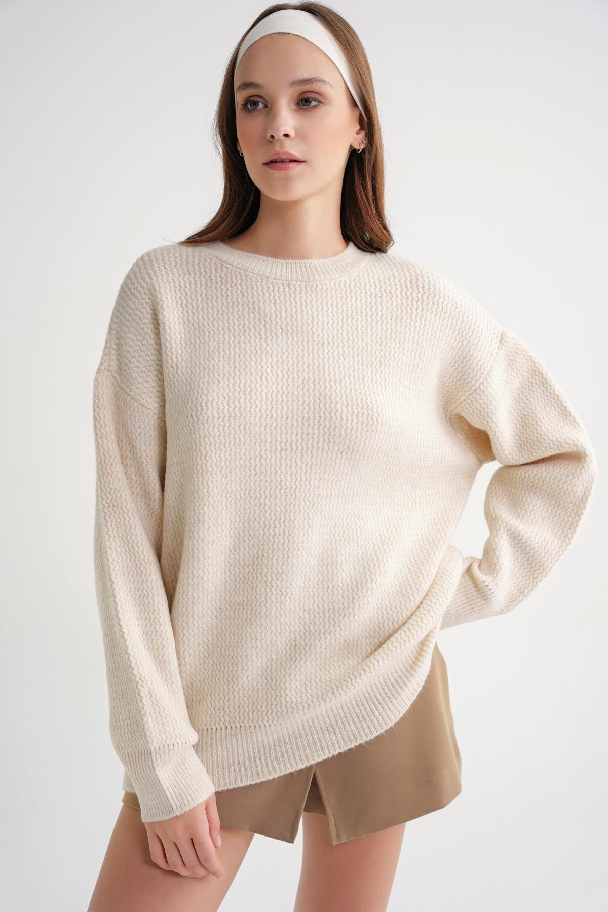 6949 Kadın Bisiklet Yaka İnce Örgülü Triko Kazak Naturel 6949 Kadın Bisiklet Yaka İnce Örgülü Triko Kazak Naturel K25KZK6949 Standart