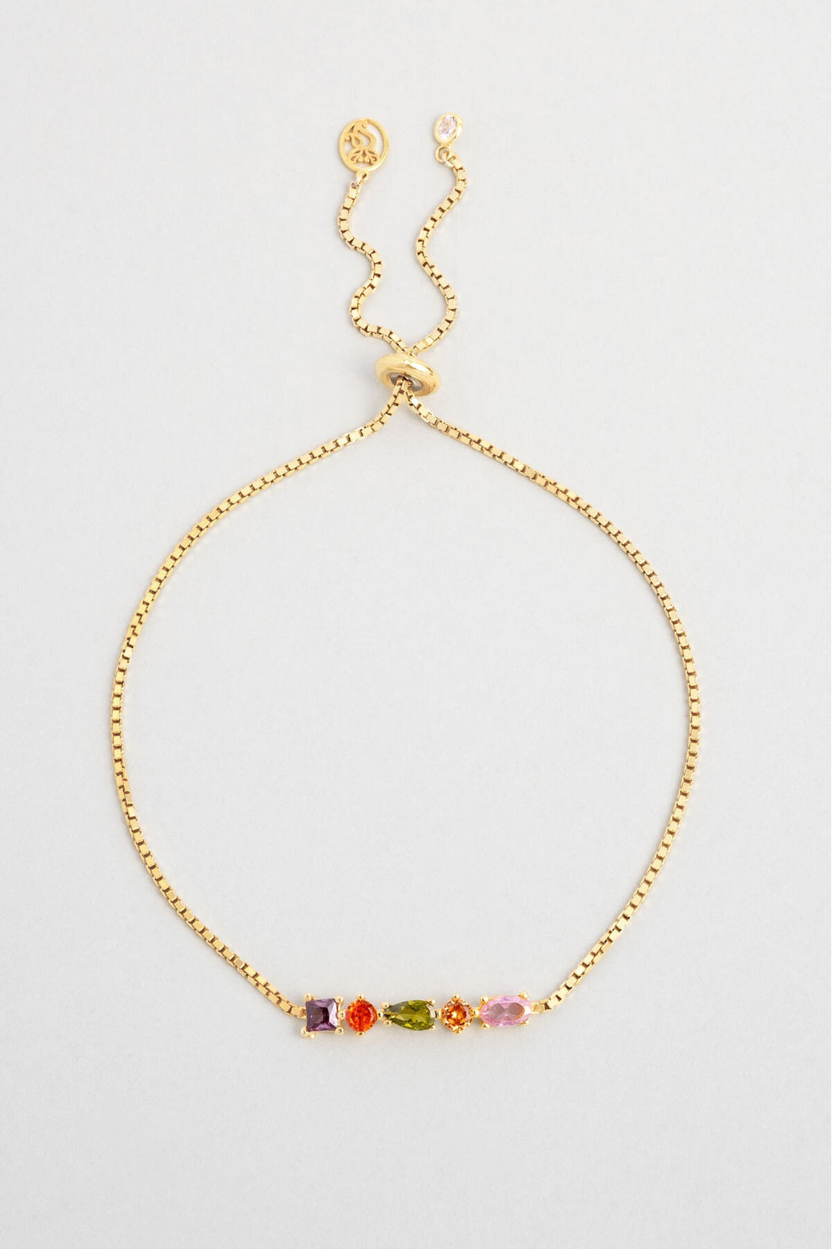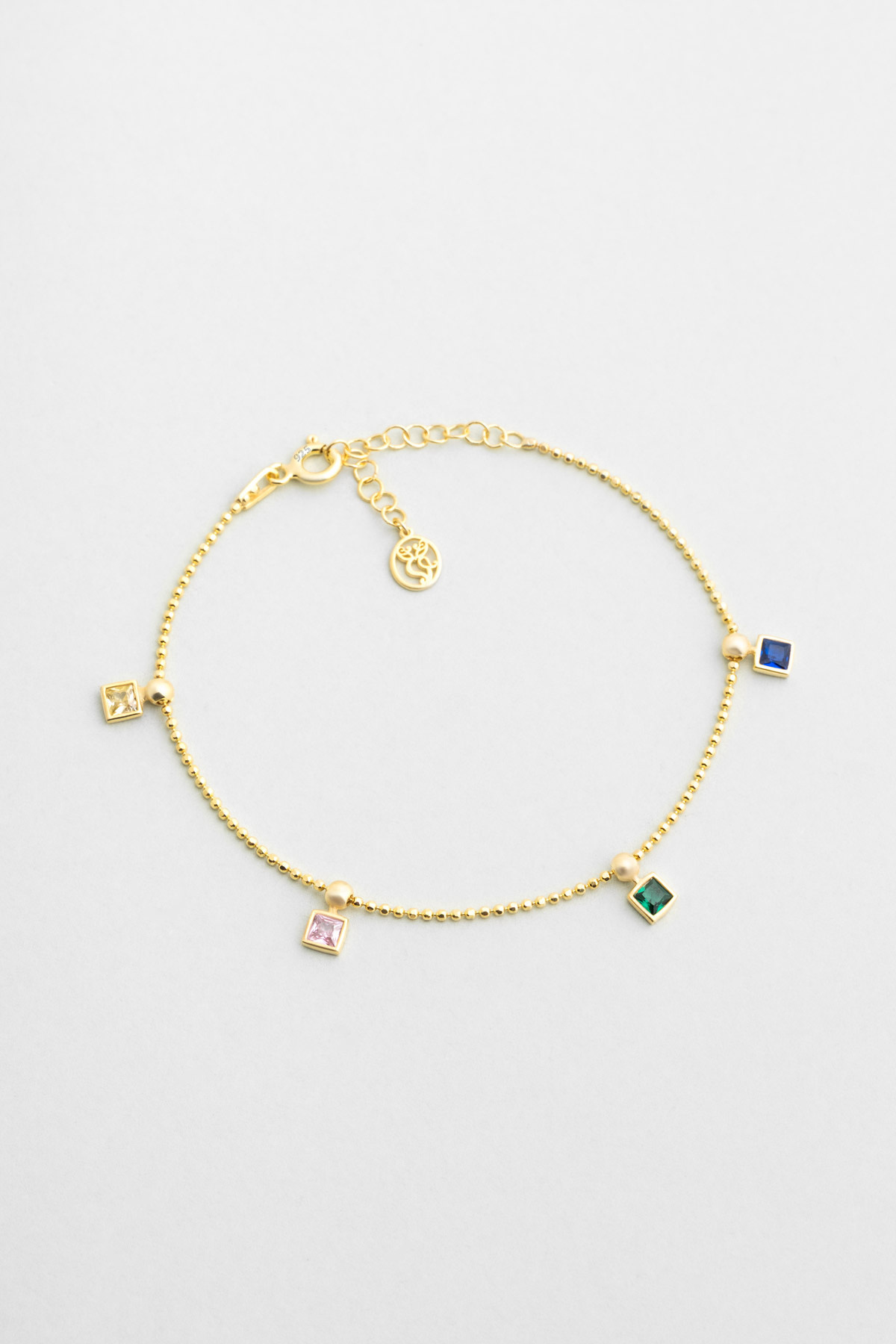 Renkli Taşlar 18 Ayar Sarı Altın Kaplama 19 Cm Gümüş Bileklik Renkli Taşlar 18 Ayar Sarı Altın Kaplama 19 Cm Gümüş Bileklik 07283291344 تک سایز