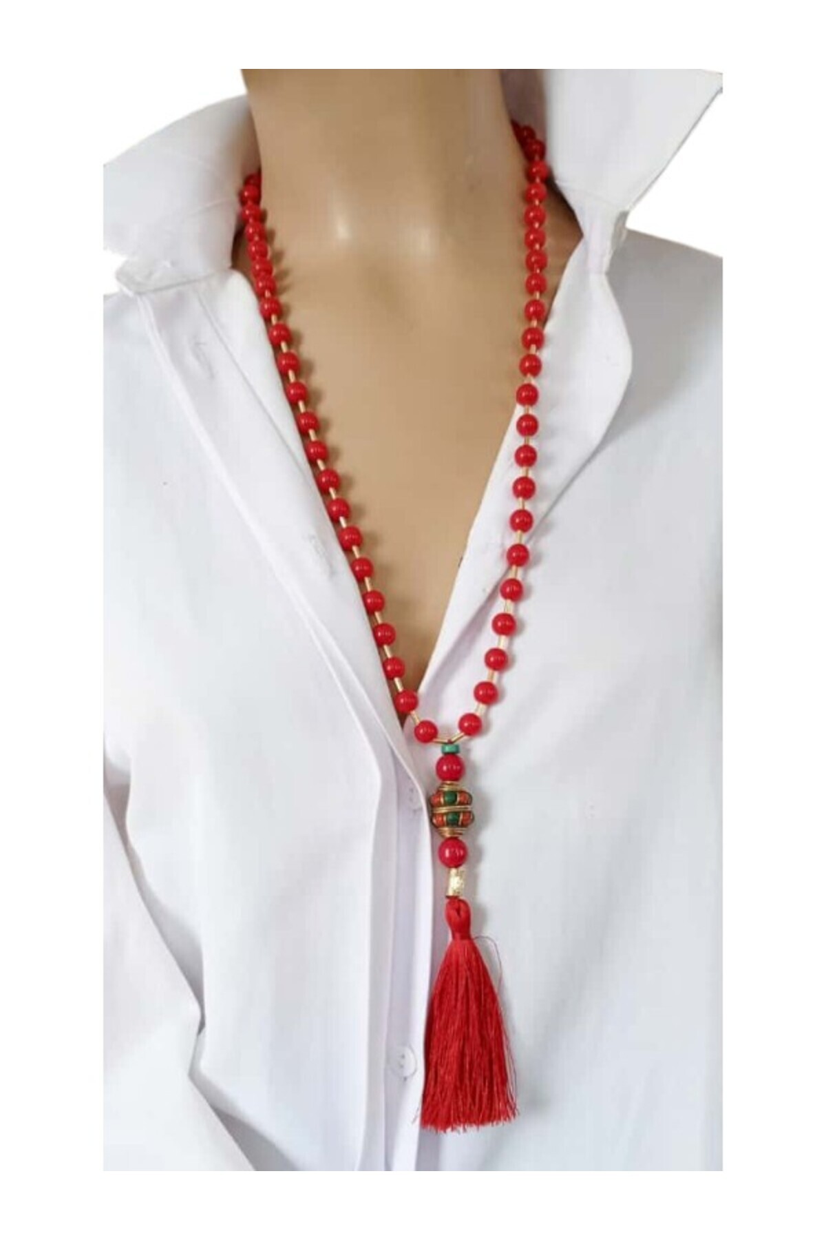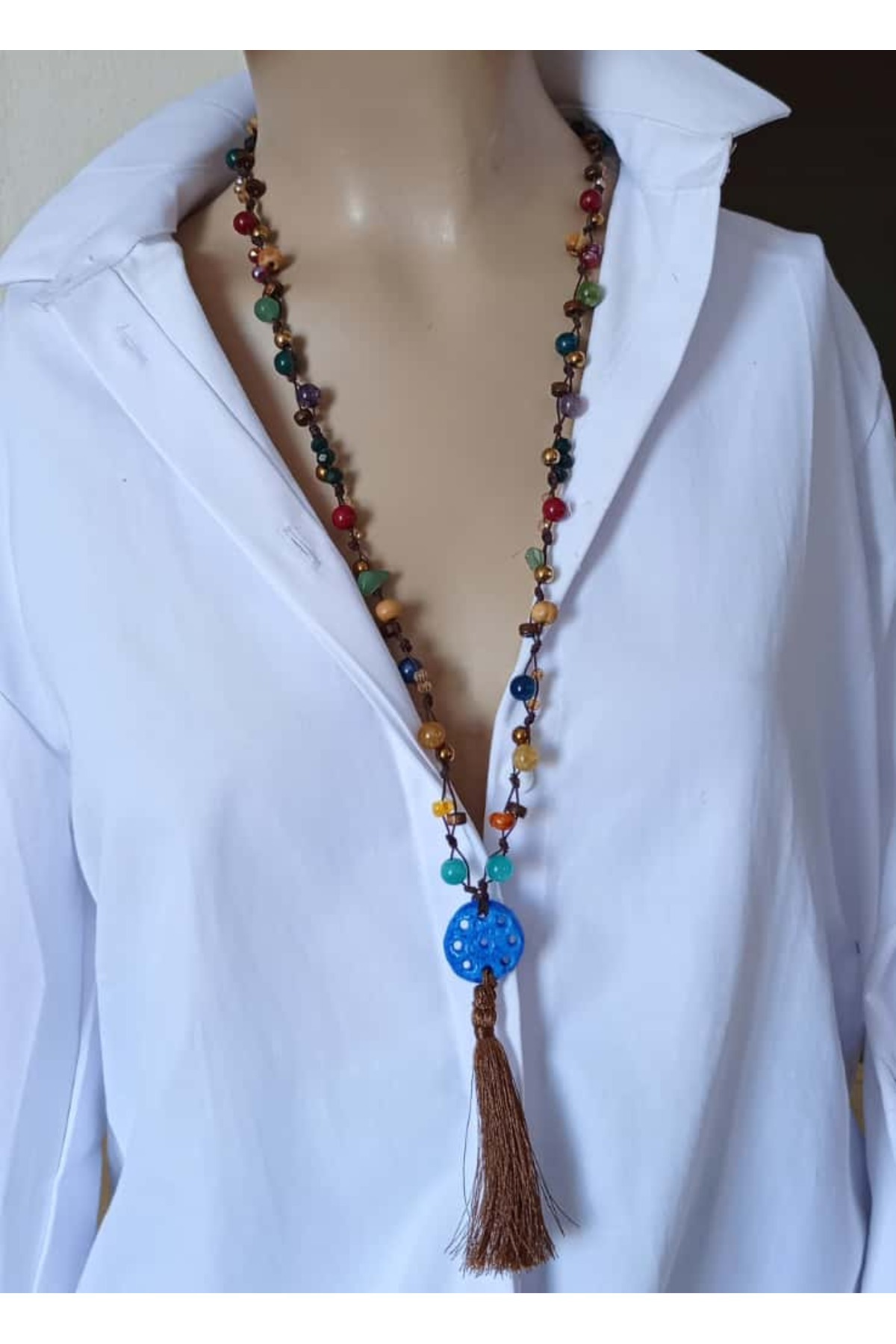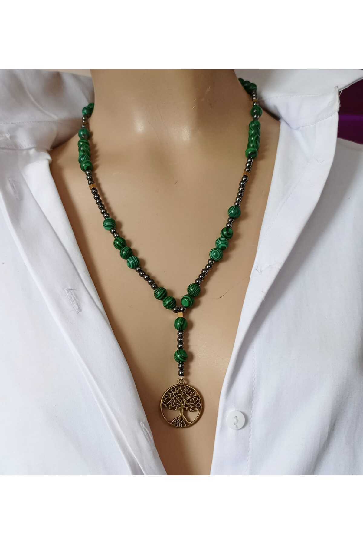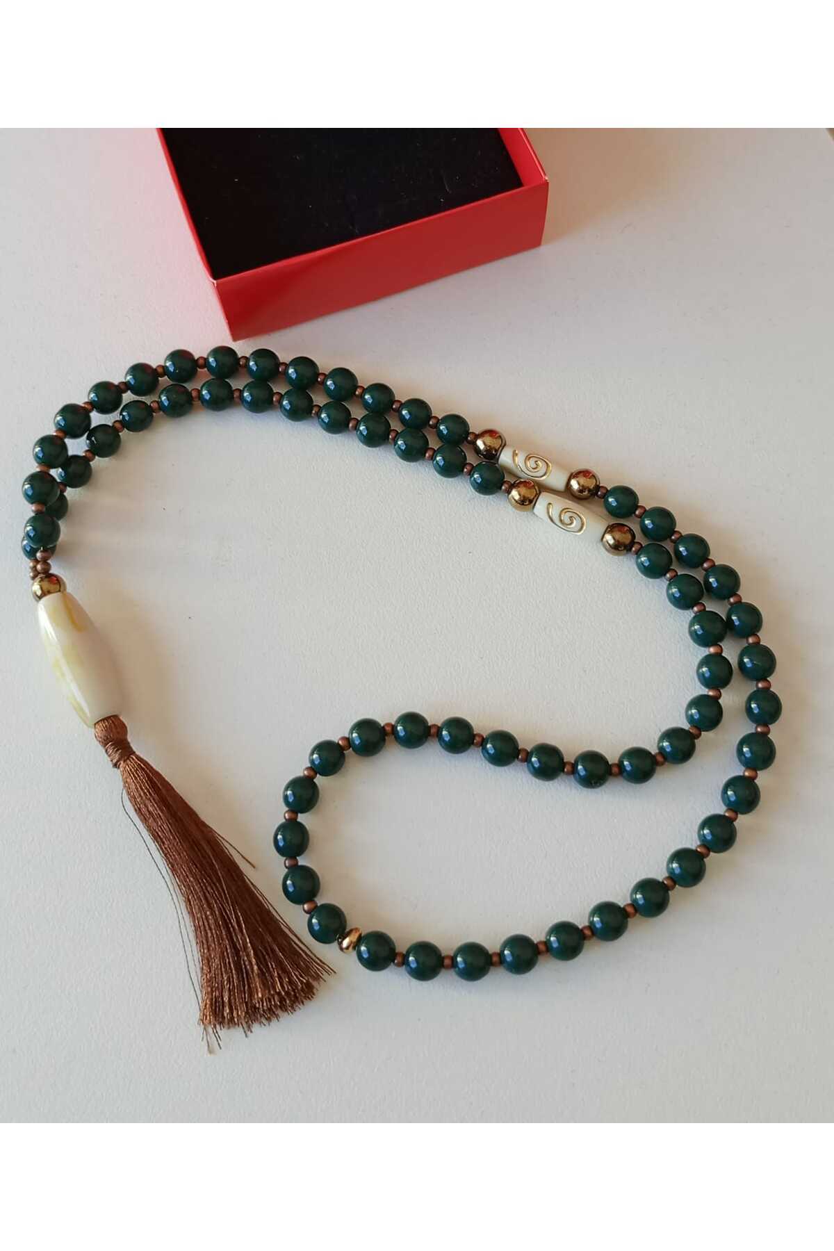 Leyla Yeşil Cam Boncuk Hematit Taşı İpek Püsküllü Otantik Kolye Leyla Yeşil Cam Boncuk Hematit Taşı İpek Püsküllü Otantik Kolye S000104 M