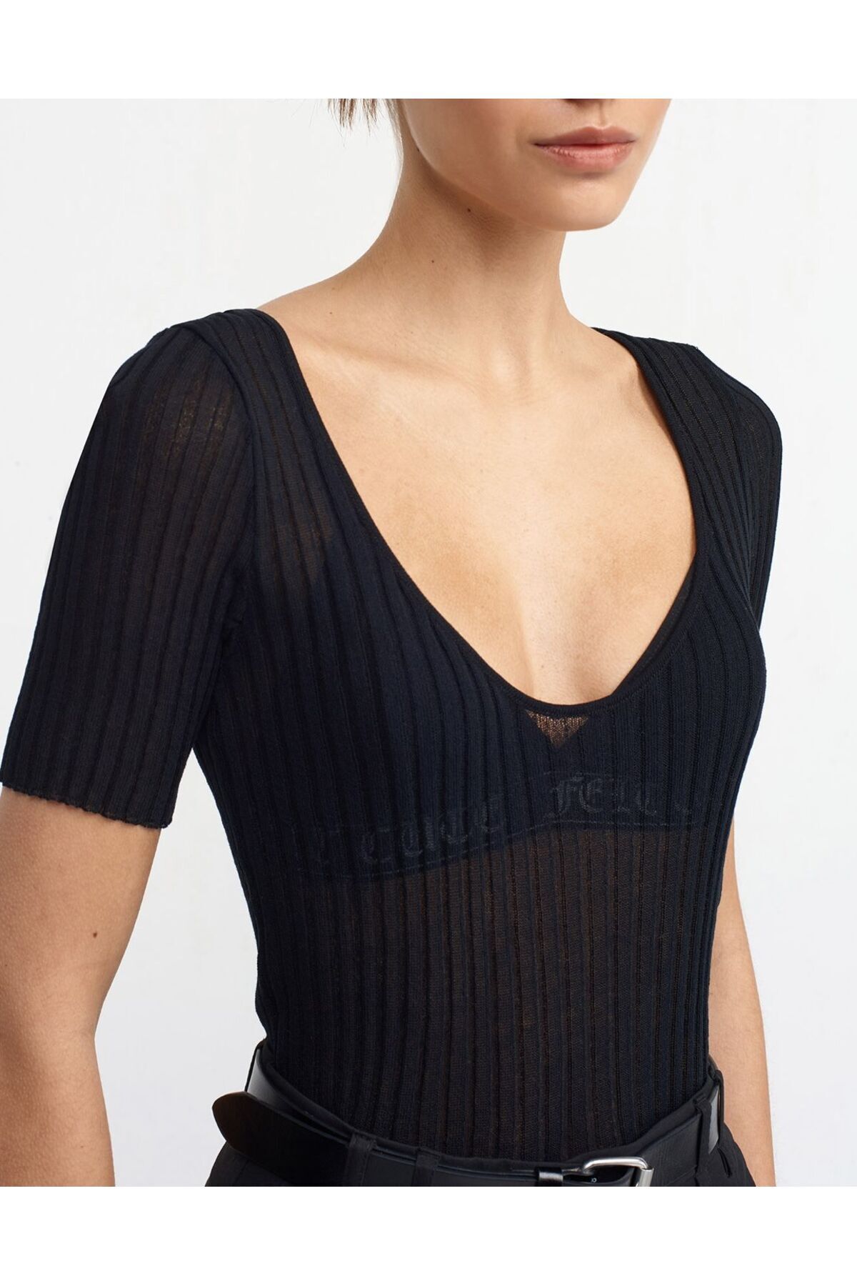 Kadın Transparan V Yaka Dantel Crop Bluz Kadın Transparan V Yaka Dantel Crop Bluz MY0020 M