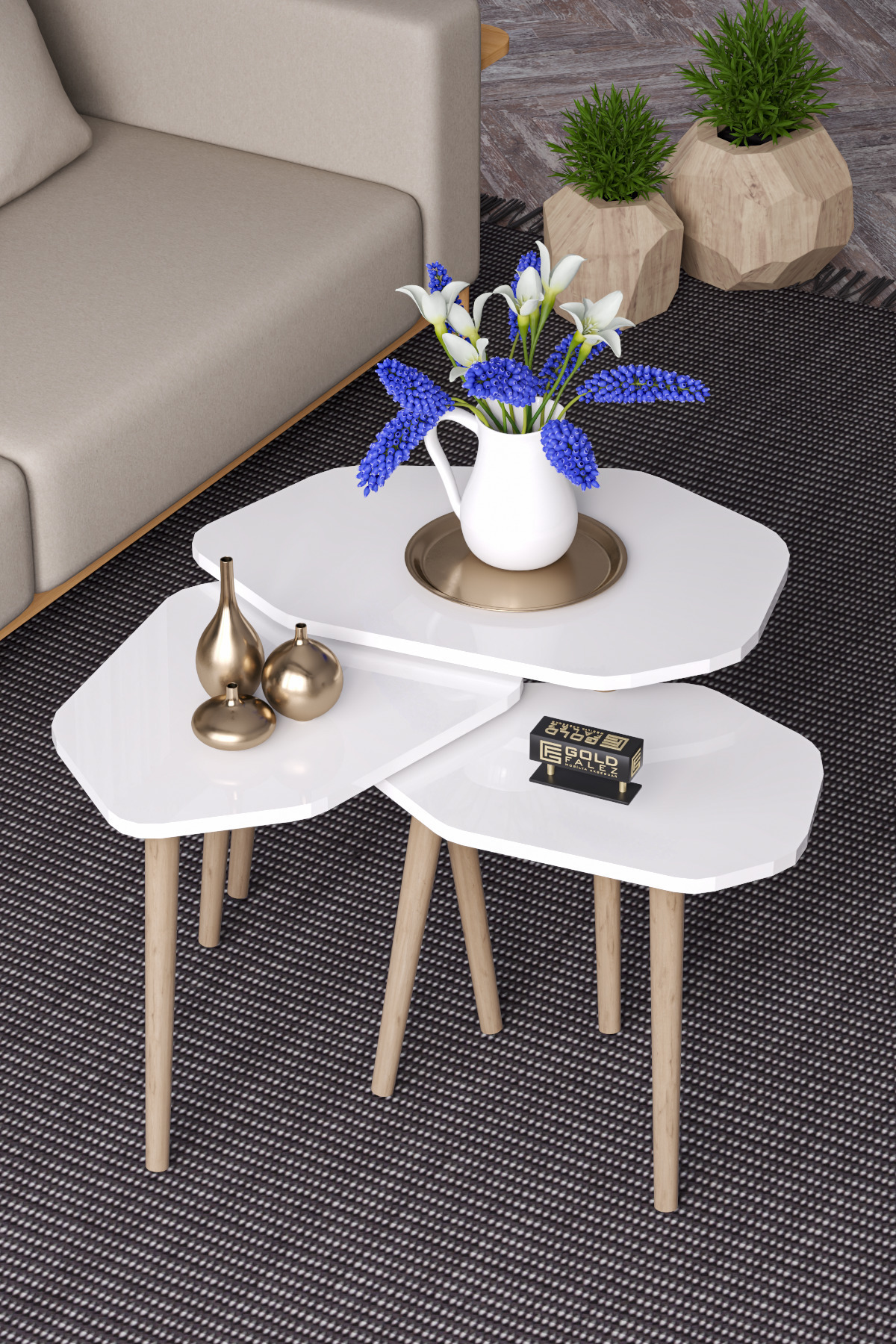 Zigon Sehpa 3'lü Trio Ahşap Yan Sehpa Orta Sehpa Krem Zigon Sehpa 3'lü Trio Ahşap Yan Sehpa Orta Sehpa Krem TRİO TAŞ تک سایز