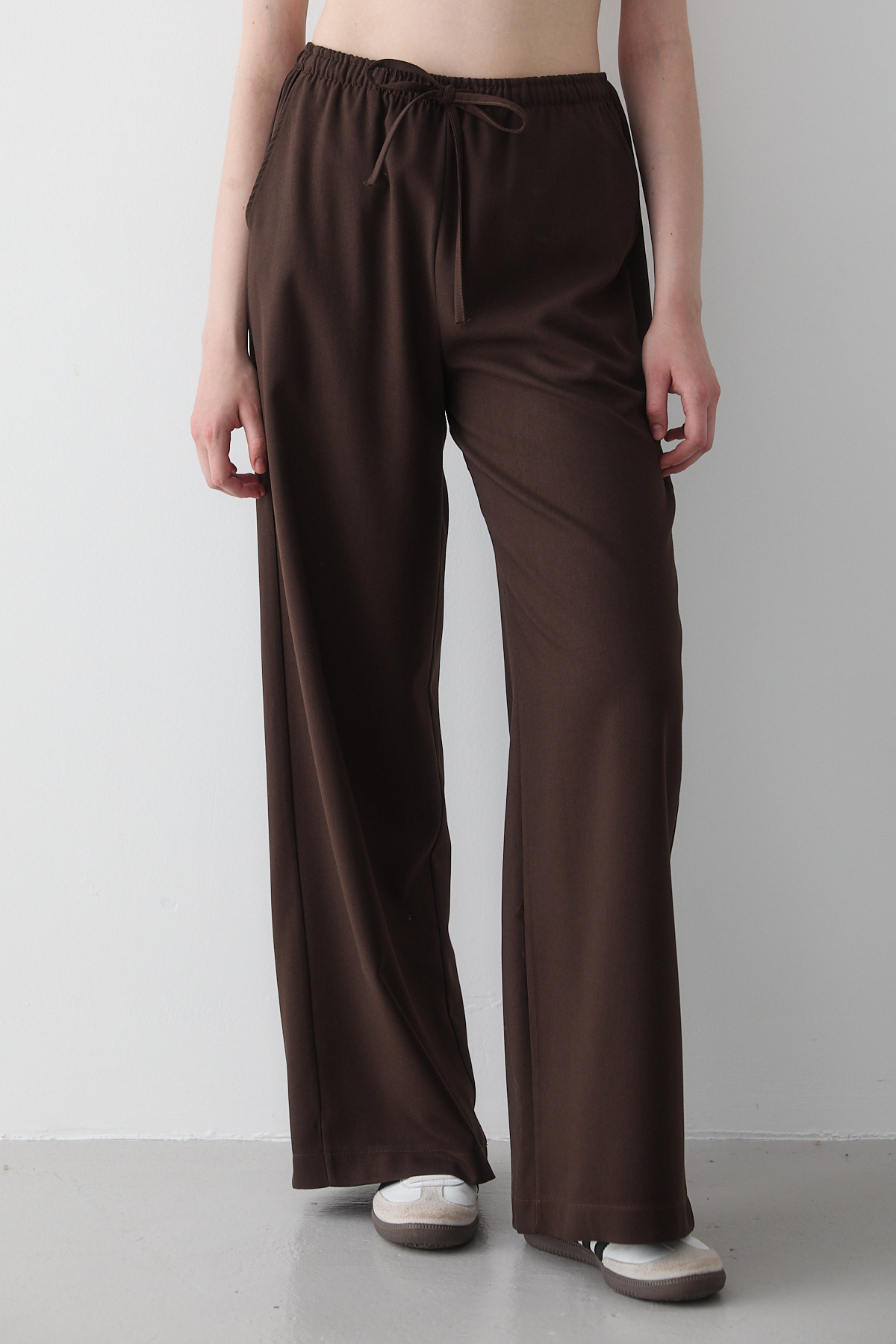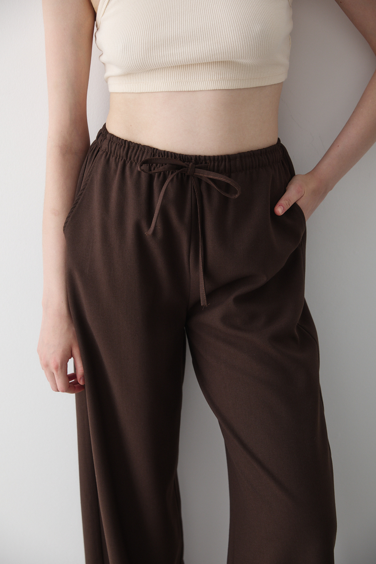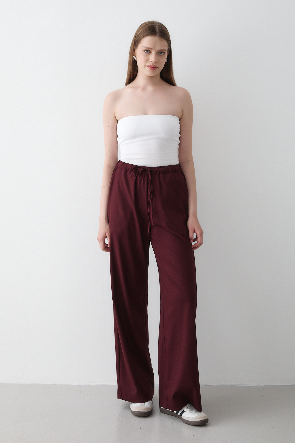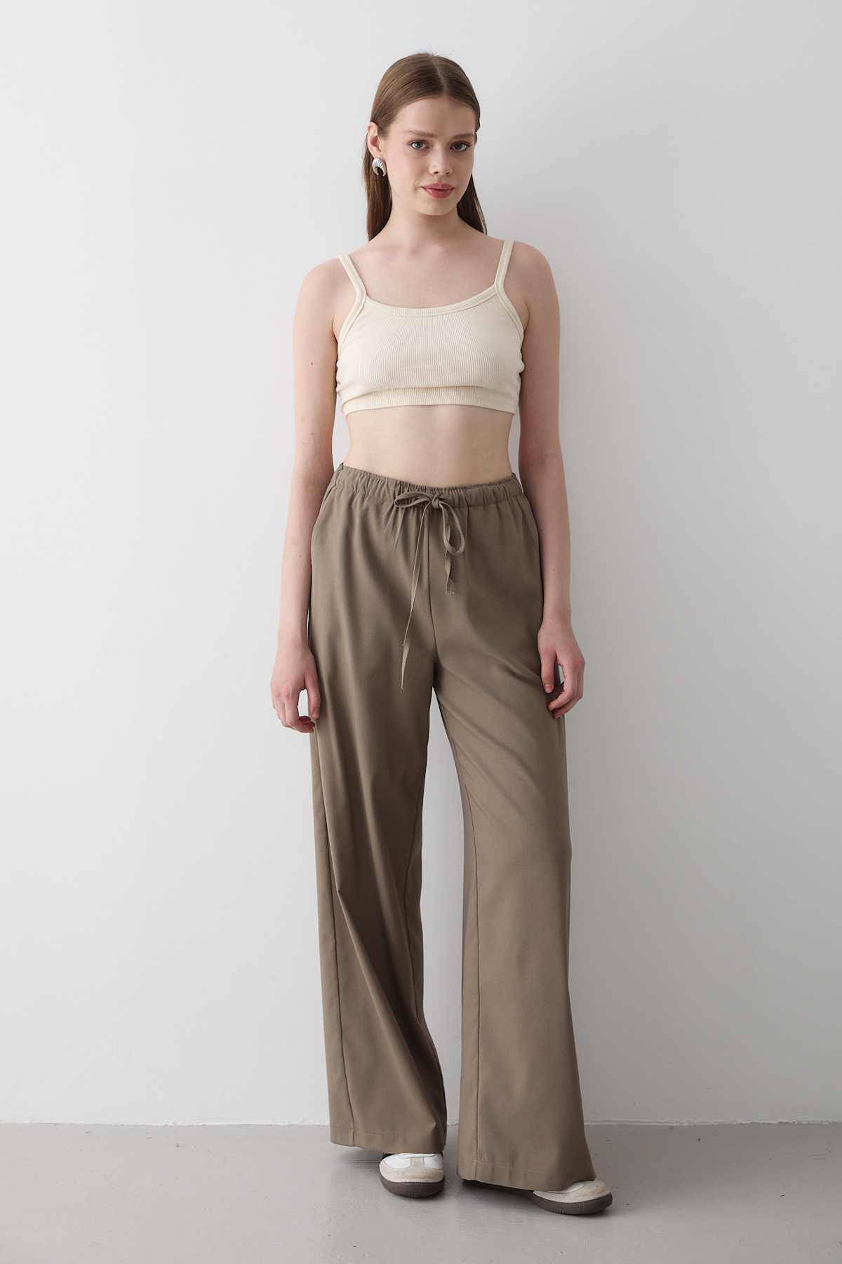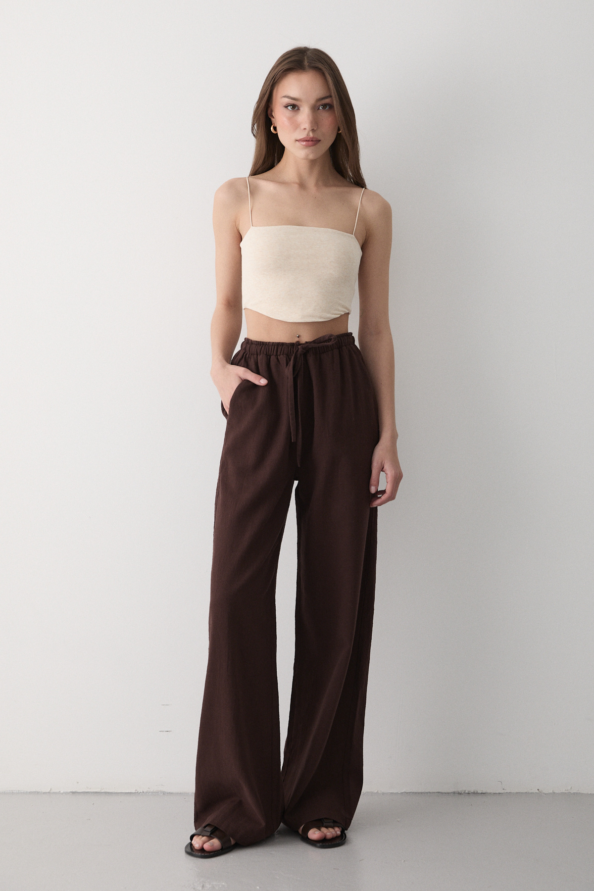Kadın Acı Kahverengi Beli Lastikli Bol Paça Palazzo Pantolon Kadın Acı Kahverengi Beli Lastikli Bol Paça Palazzo Pantolon 3817 XL