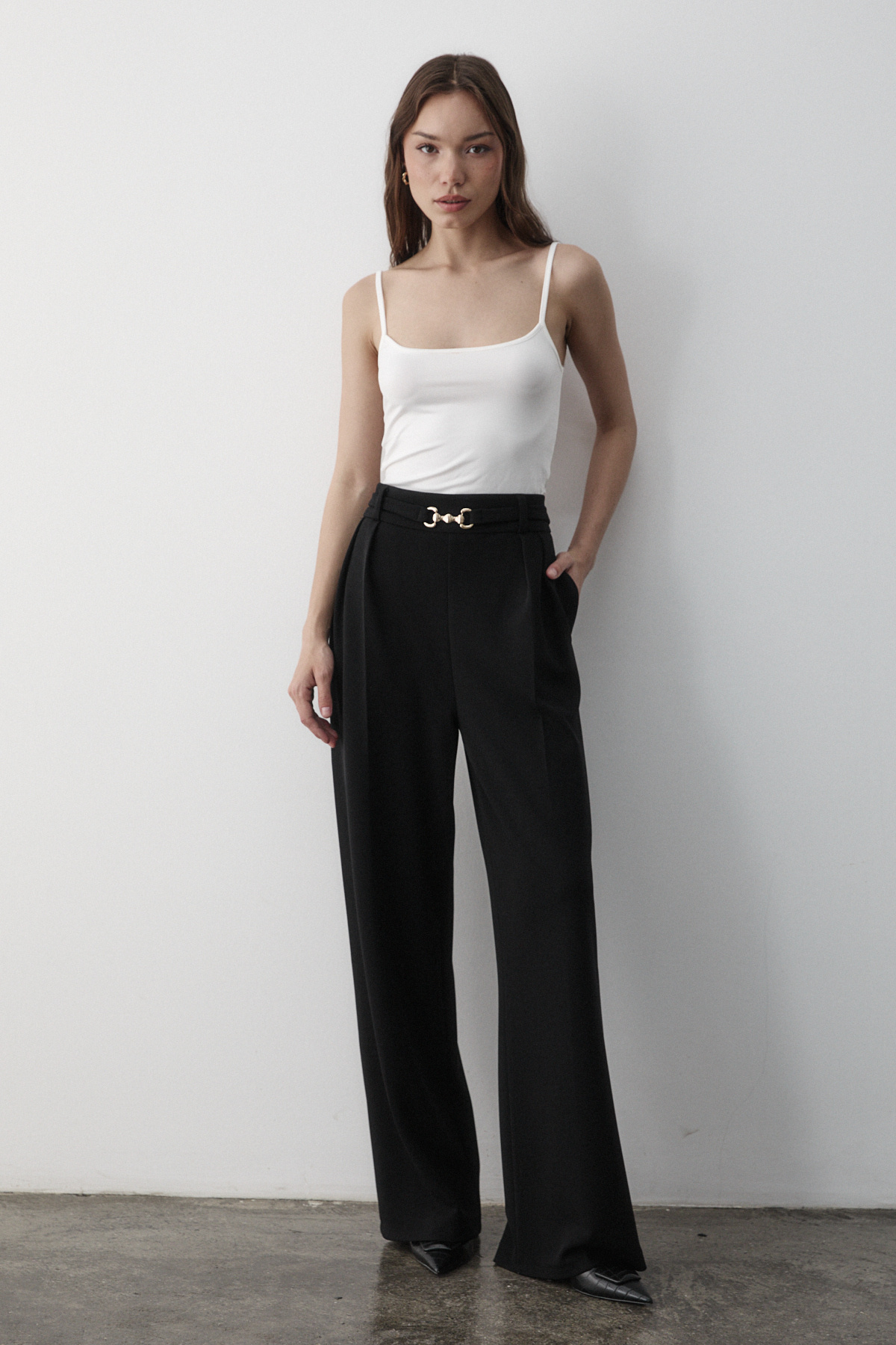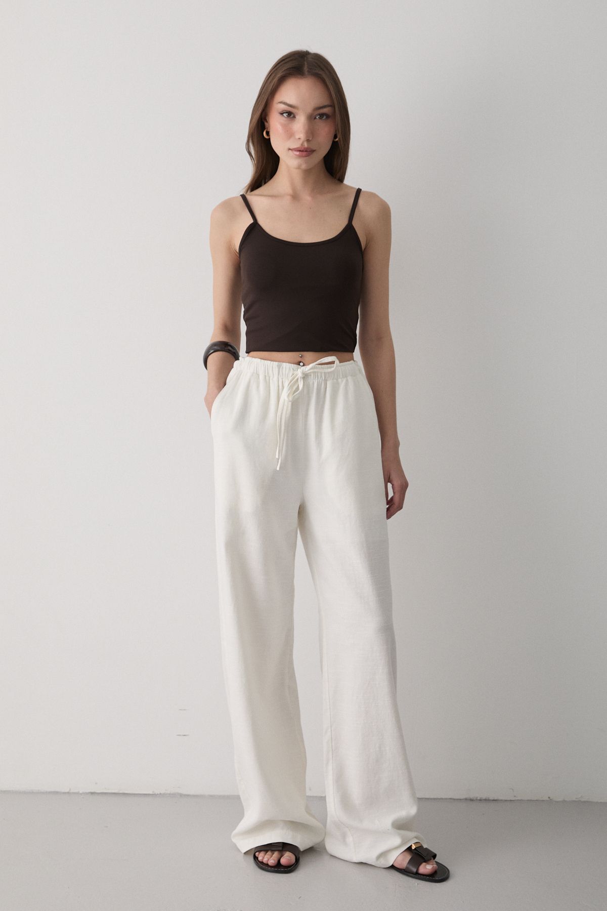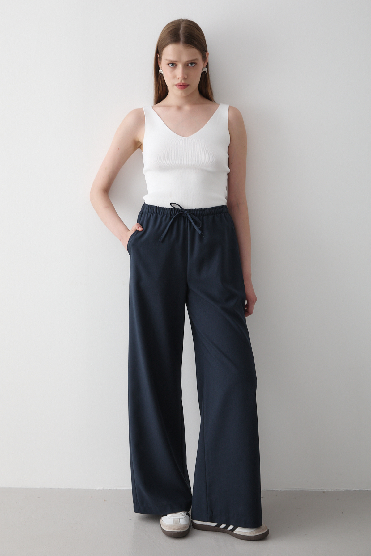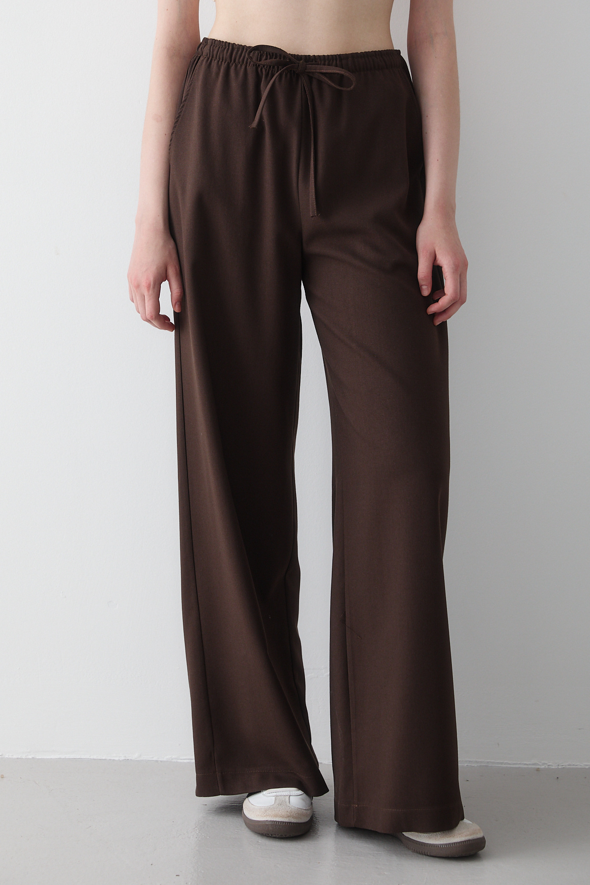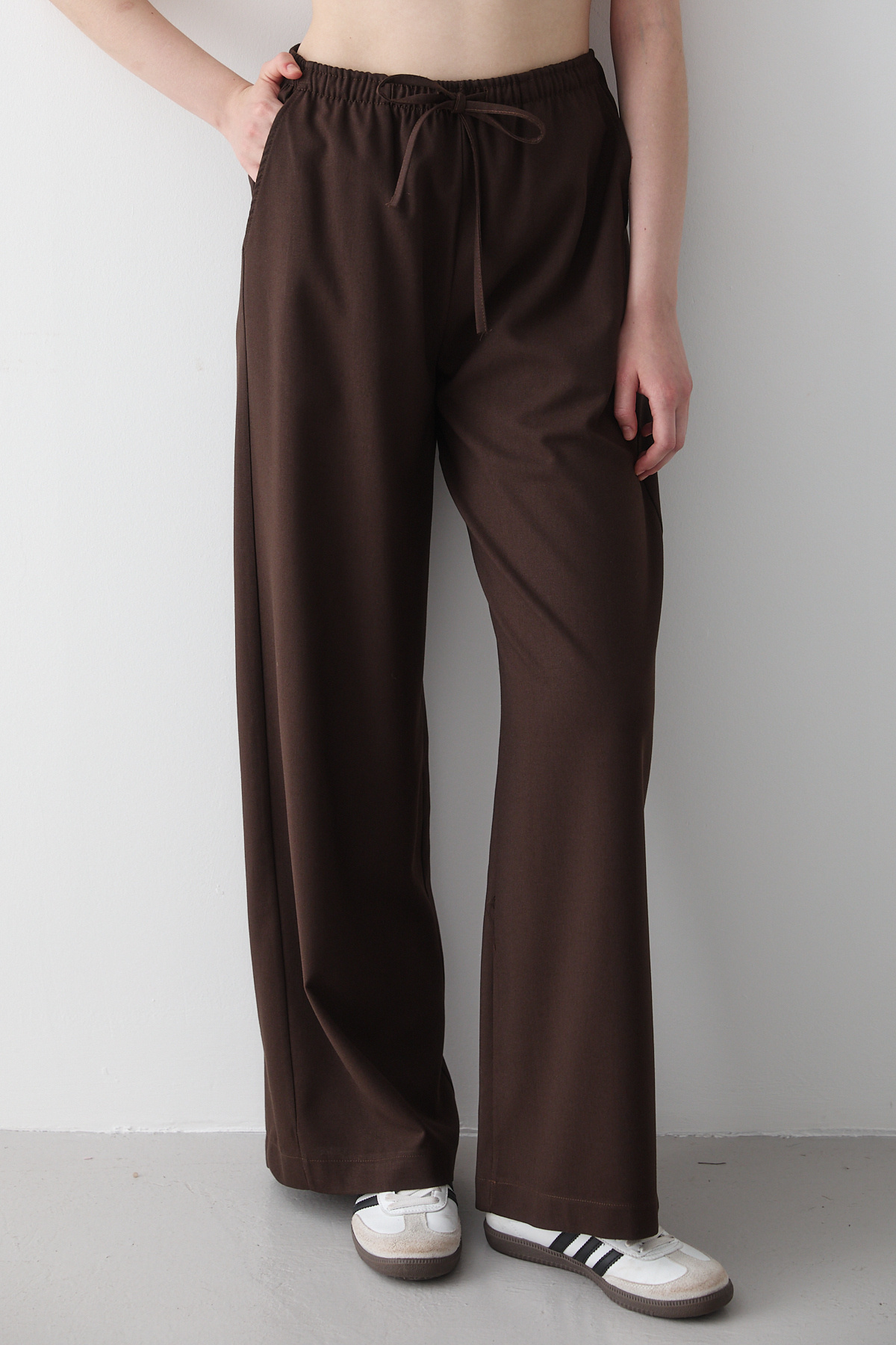 Kadın Acı Kahverengi Beli Lastikli Bol Paça Palazzo Pantolon Kadın Acı Kahverengi Beli Lastikli Bol Paça Palazzo Pantolon 3817 XL