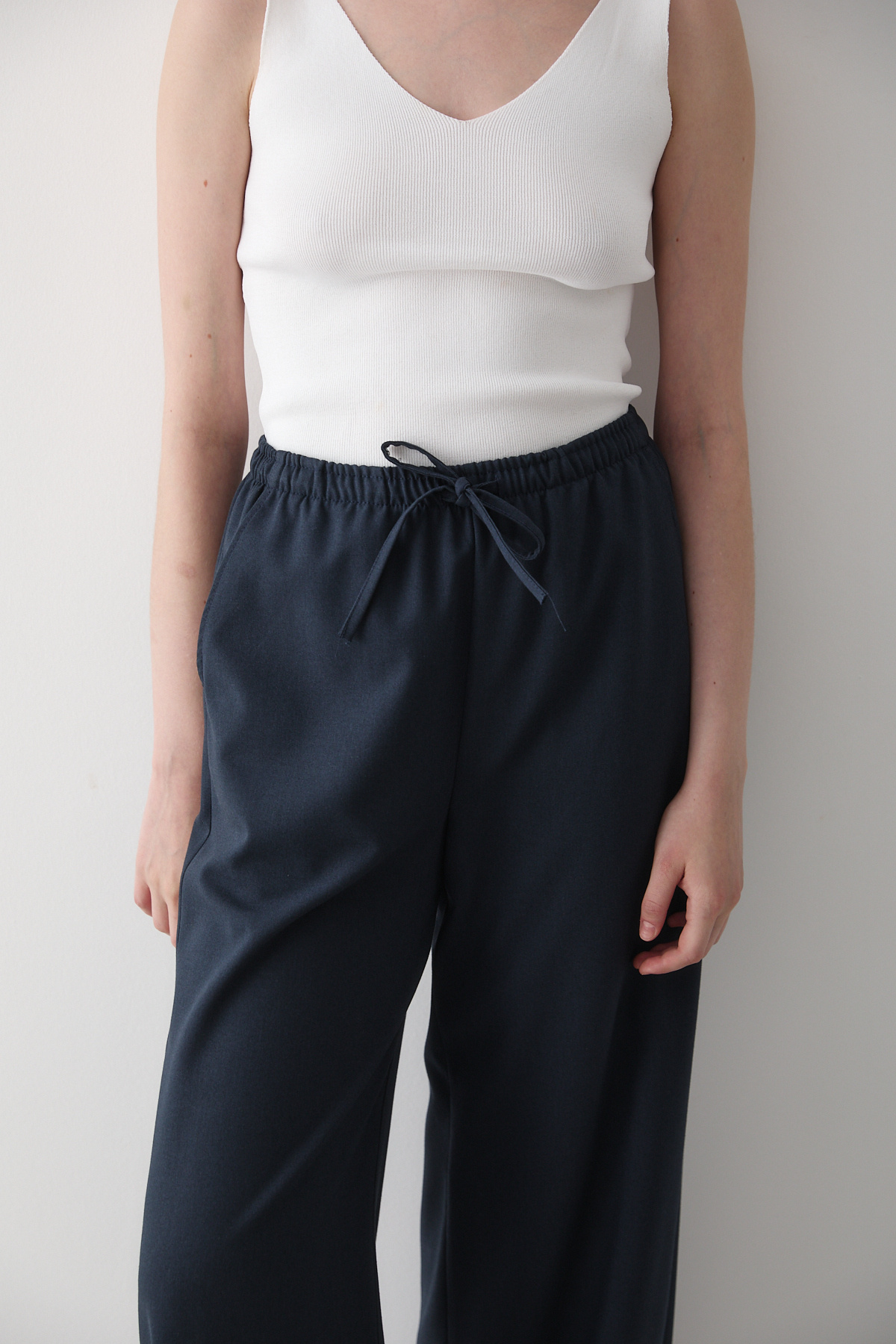 Kadın Lacivert Beli Lastikli Bol Paça Palazzo Pantolon Kadın Lacivert Beli Lastikli Bol Paça Palazzo Pantolon 3817 XL