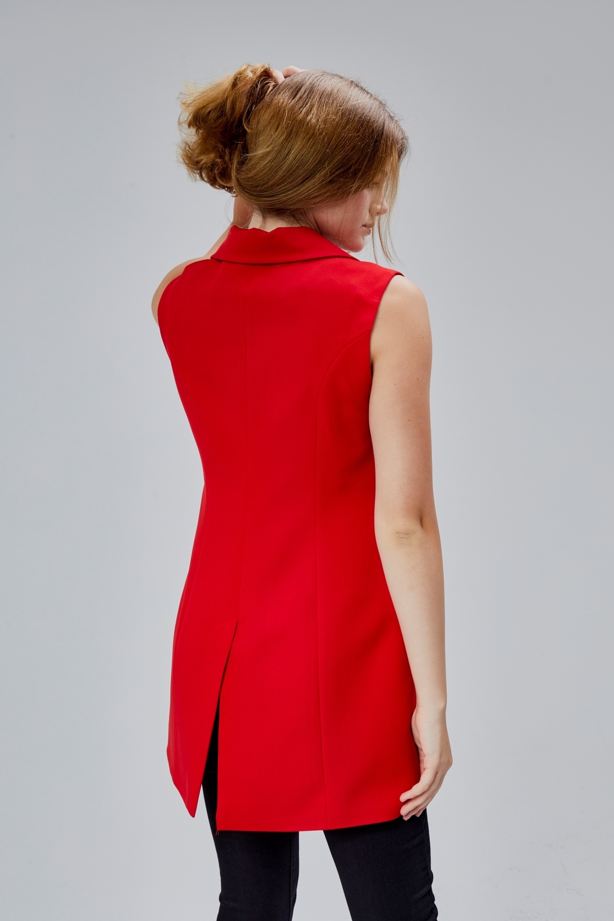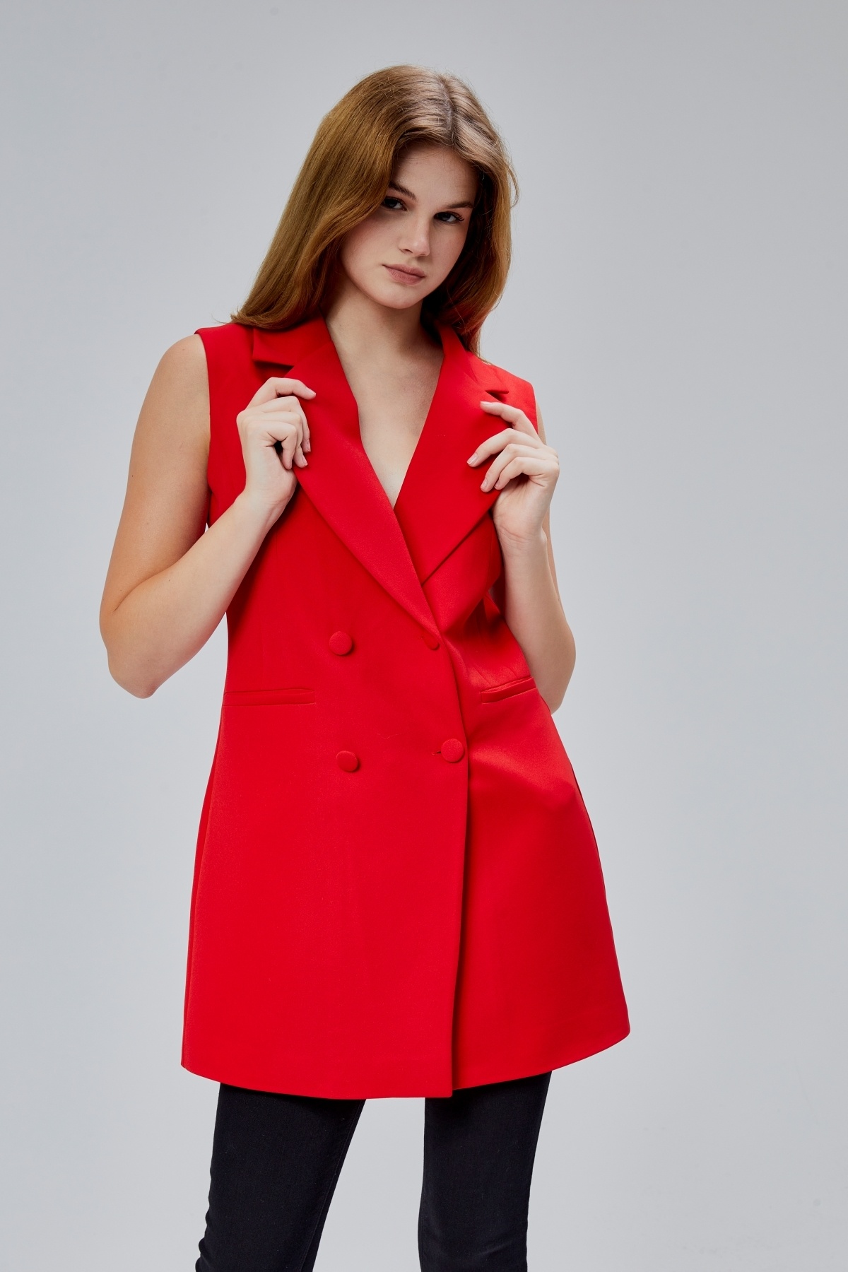 Kırmızı Uzun Kruvaze Dokuma Yelek Kırmızı Uzun Kruvaze Dokuma Yelek 46145 2XL