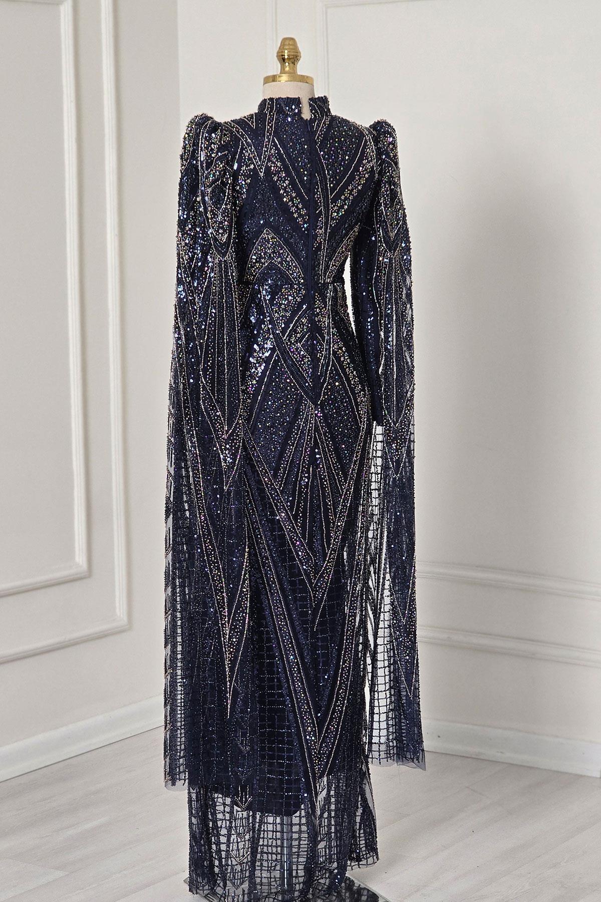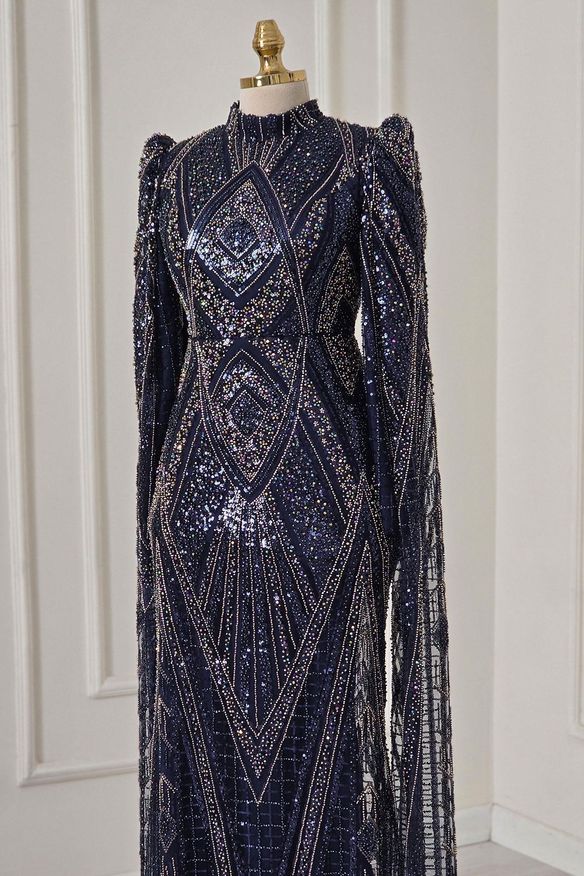 Lacivert Cam Boncuklu Pelerinli Abiye 6520 Lacivert Cam Boncuklu Pelerinli Abiye 6520 P-0000000003897 44