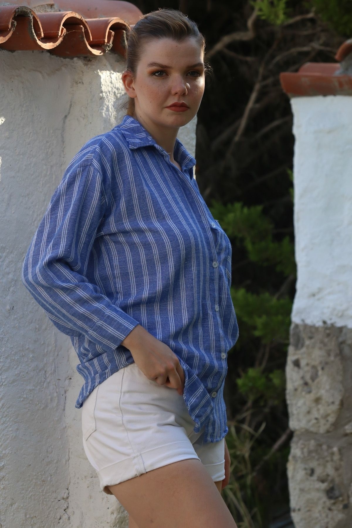 Mavi Gömlek Yaka Uzun Kol Çizgili Düğmeli Yıkamalı Casual Dokuma Gömlek 70 56 Mavi Gömlek Yaka Uzun Kol Çizgili Düğmeli Yıkamalı Casual Dokuma Gömlek 70 56 M10010400GM98878 XL