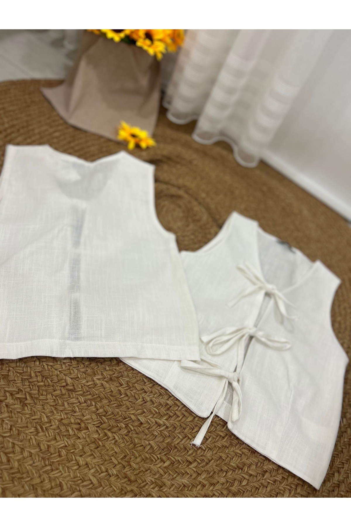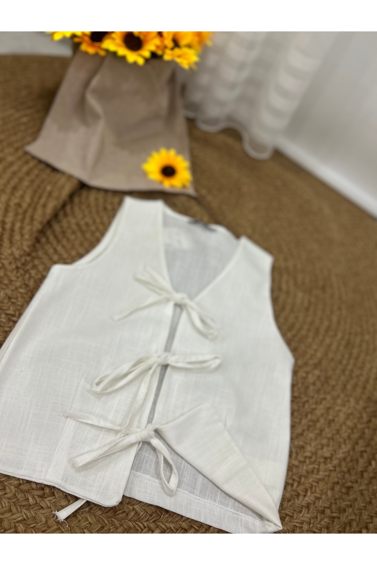 Biyeli Sıfır Kol Bağlamalı Kadın Yelek Biyeli Sıfır Kol Bağlamalı Kadın Yelek beyaz M/L
