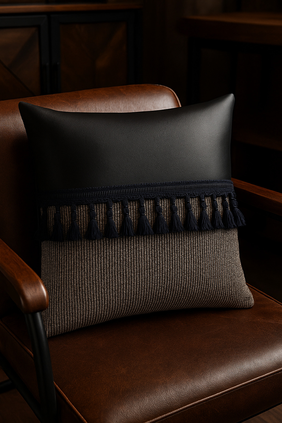 Deri ve Saçak Detaylı Dekoratif Kırlent Kılıfı – Modern & Retro Tarz Deri ve Saçak Detaylı Dekoratif Kırlent Kılıfı – Modern & Retro Tarz kırlent 45 x 45