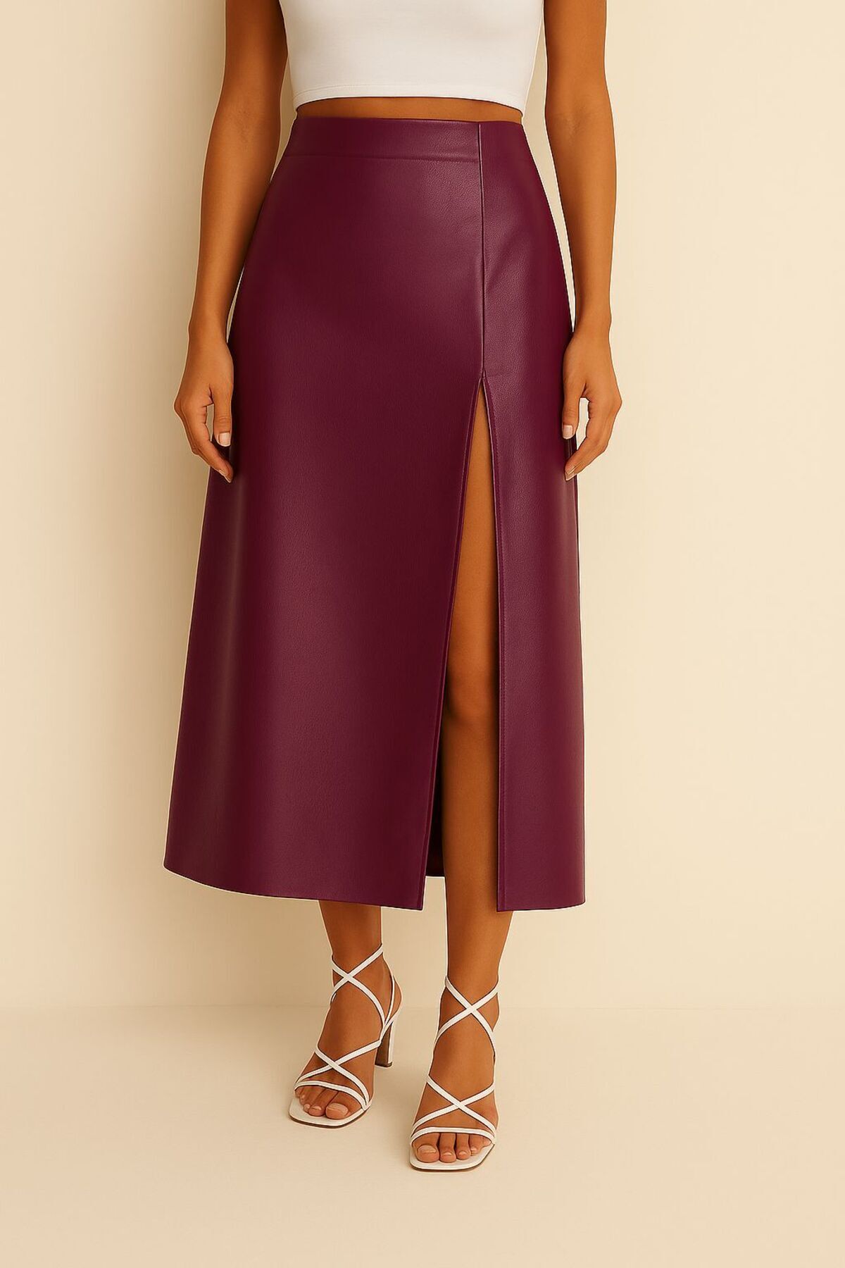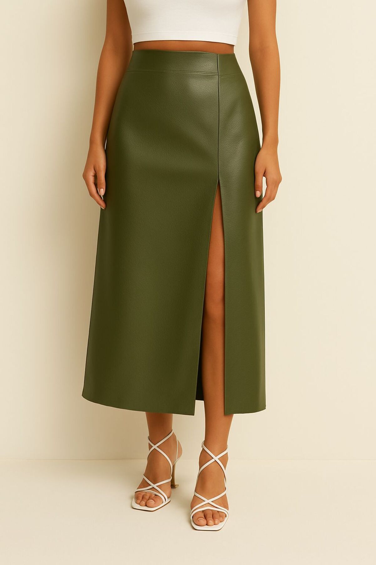 kadın deri midi boy ön baçak yırtmaçlı etek kadın deri midi boy ön baçak yırtmaçlı etek deri ön baçak yırtmaçlı etek 2X