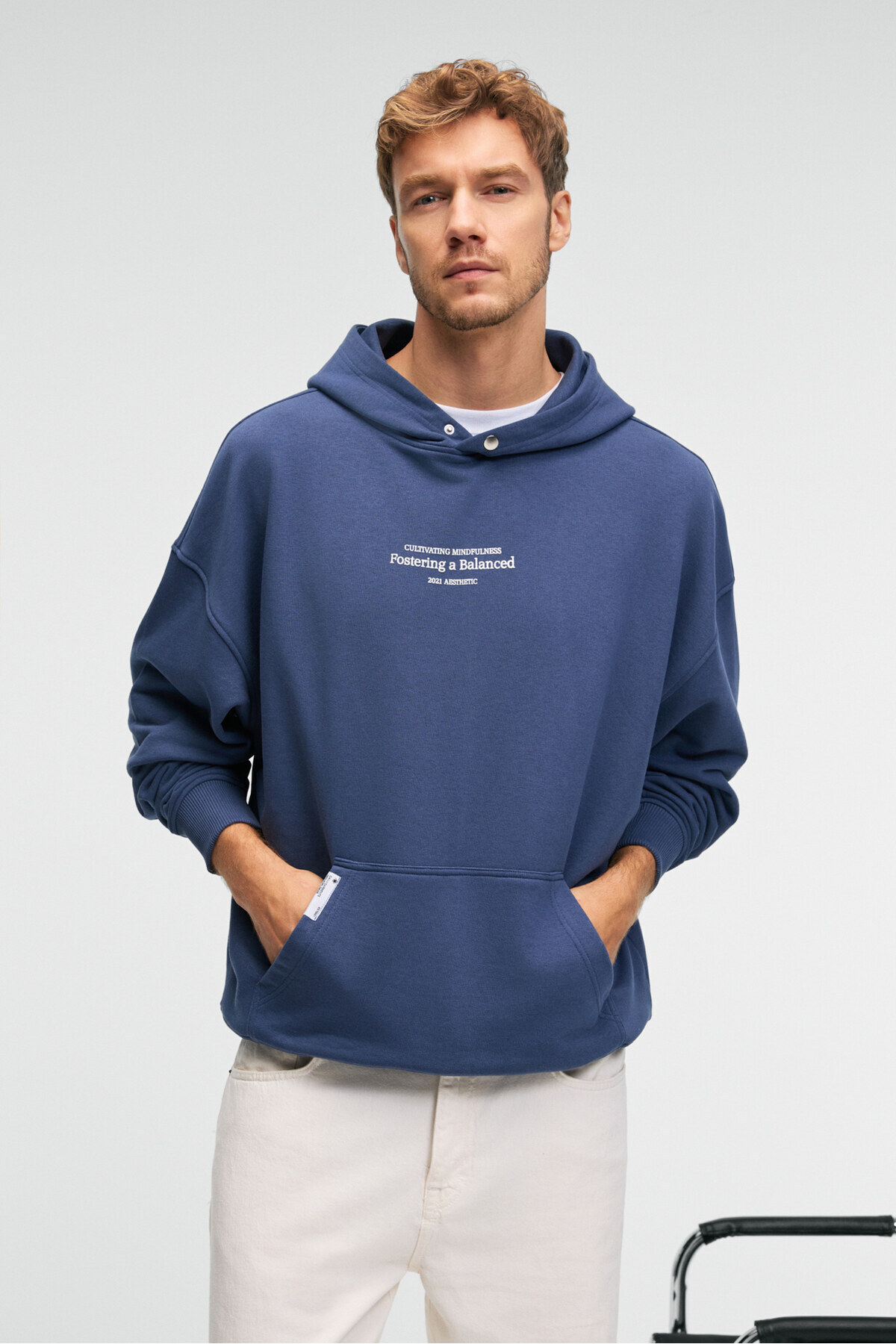 CLAY Erkek %100 Pamuk Kapüşonlu Çıtçıtlı Baskılı Cebi Süs Etiketli İndigo Sweatshirt CLAY Erkek %100 Pamuk Kapüşonlu Çıtçıtlı Baskılı Cebi Süs Etiketli İndigo Sweatshirt CLAY01012025 2XL