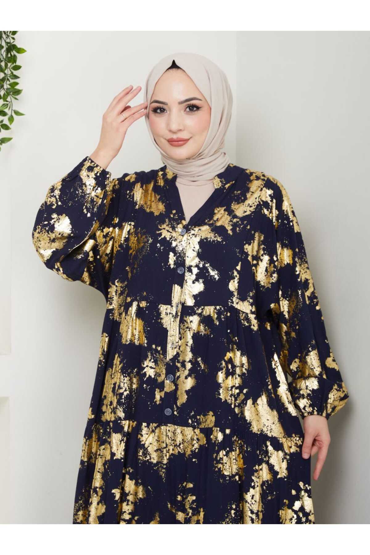 VARAK BASKILI OVERSİZE VİSCON ELBİSE VARAK BASKILI OVERSİZE VİSCON ELBİSE 4731-4 48-50