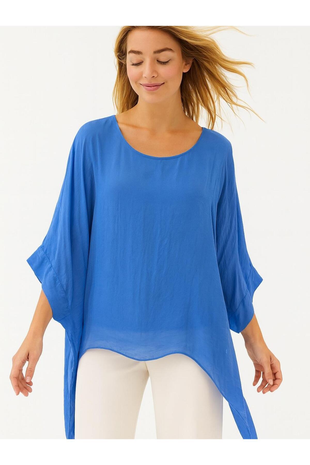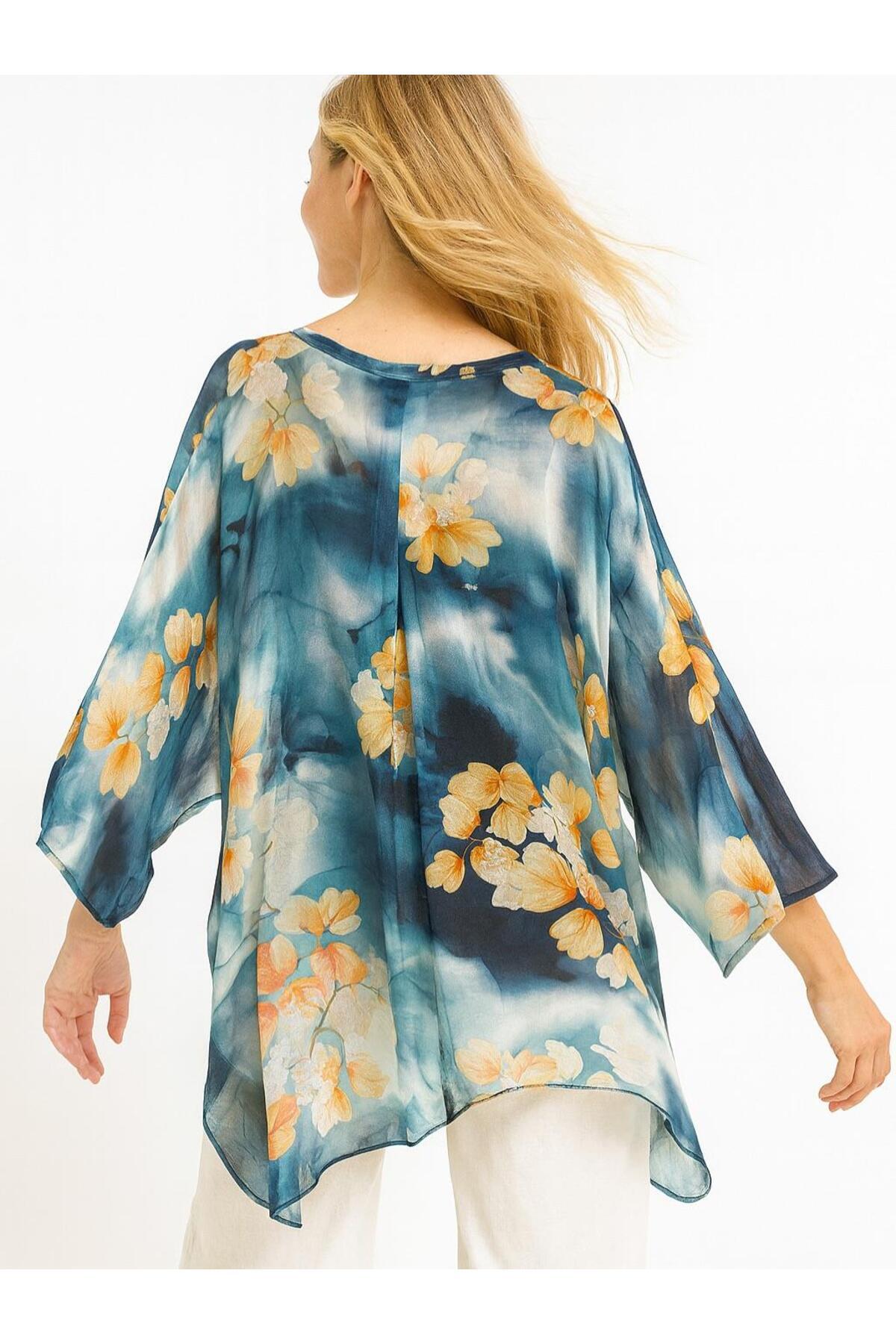 İtalyan Çiçek Desen İpek Bluz - KOYU MAVİ İtalyan Çiçek Desen İpek Bluz - KOYU MAVİ HEB3823 Standart