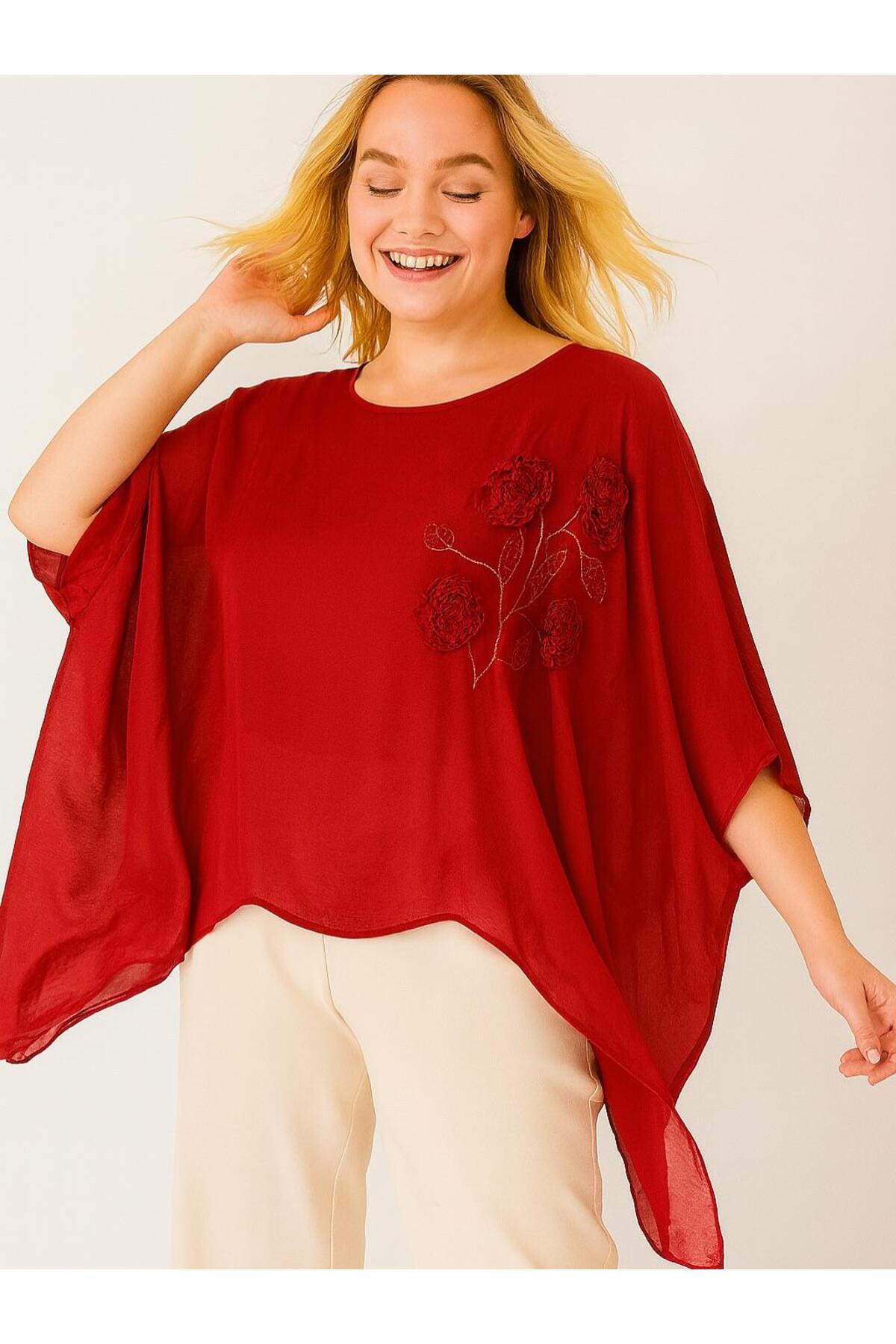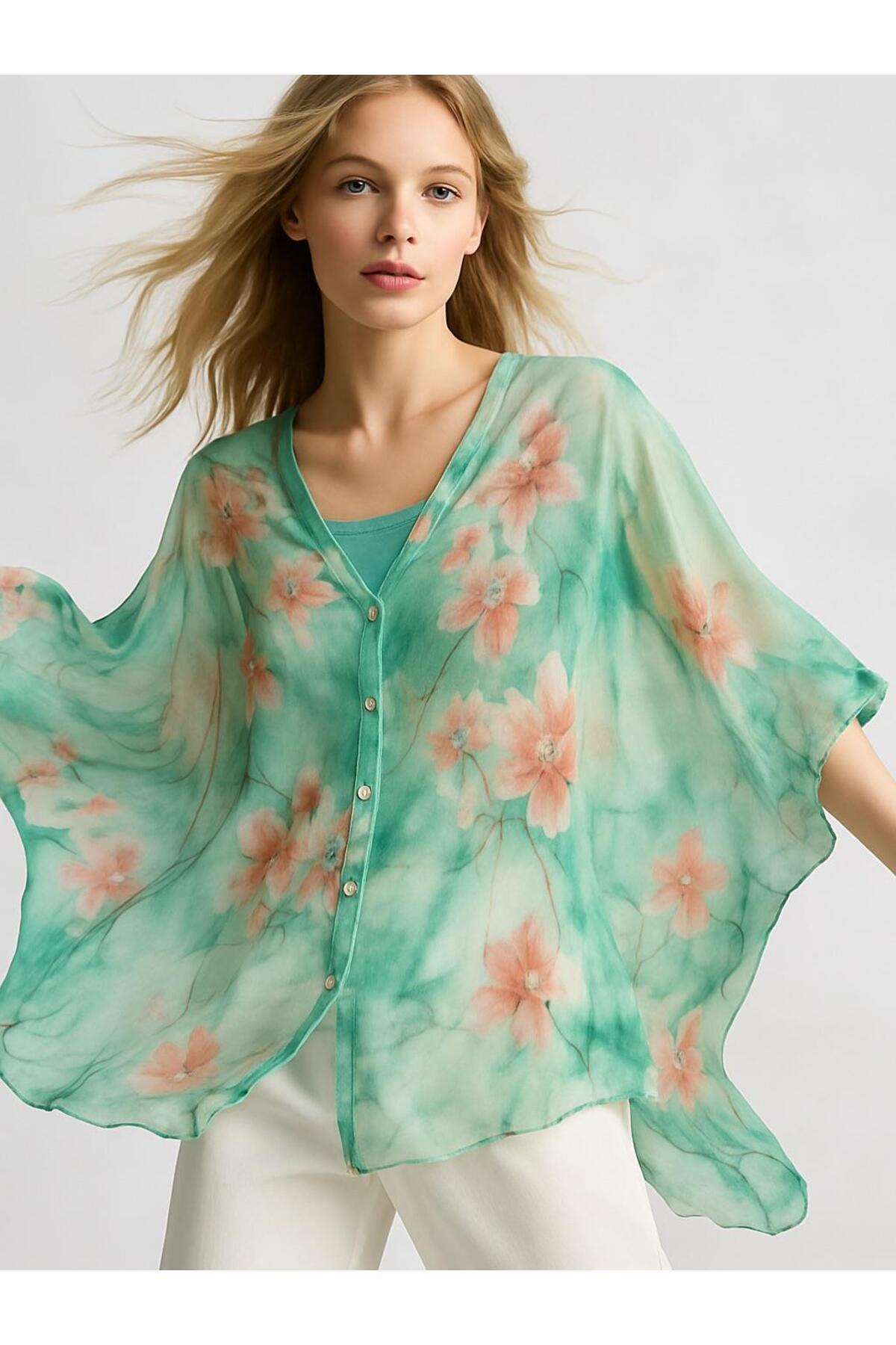 İtalyan Çiçek Desen İpek Bluz - SU YEŞİLİ İtalyan Çiçek Desen İpek Bluz - SU YEŞİLİ HEB3826 Standart